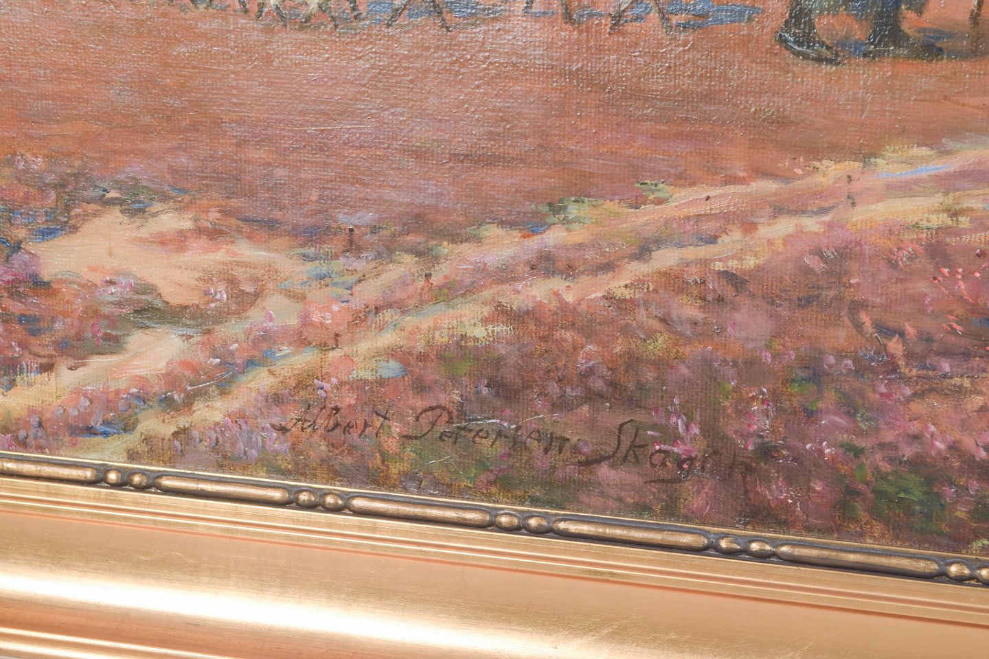 Albert Petersen, “Dyrene tages hjem”, olie på lærred, listet dansk kunstner.