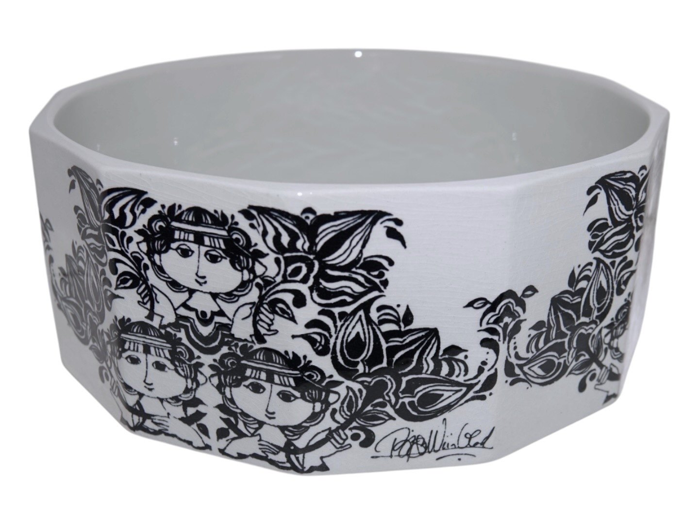 Bjørn Wiinblad større og kantet skål med sort dekoration.