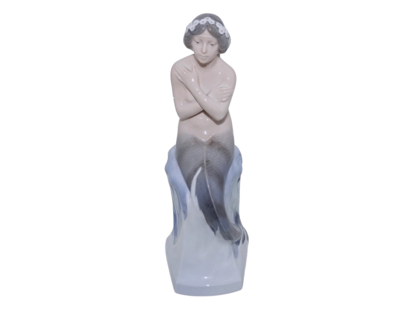 Royal Copenhagen figur af Den Lille Havfrue siddende på is.