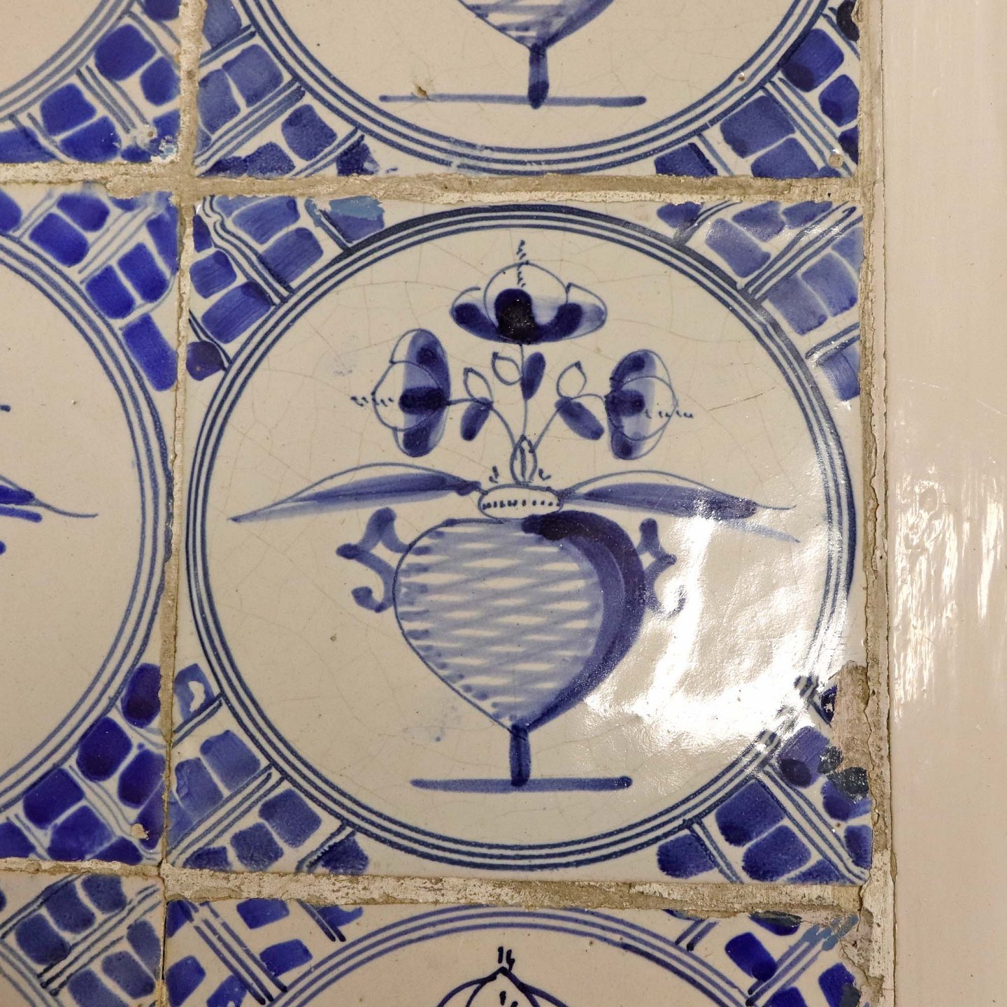 Fremstår med lettere krakkeleringer og mindre nøk i fliser samt brugsspor på malingen.