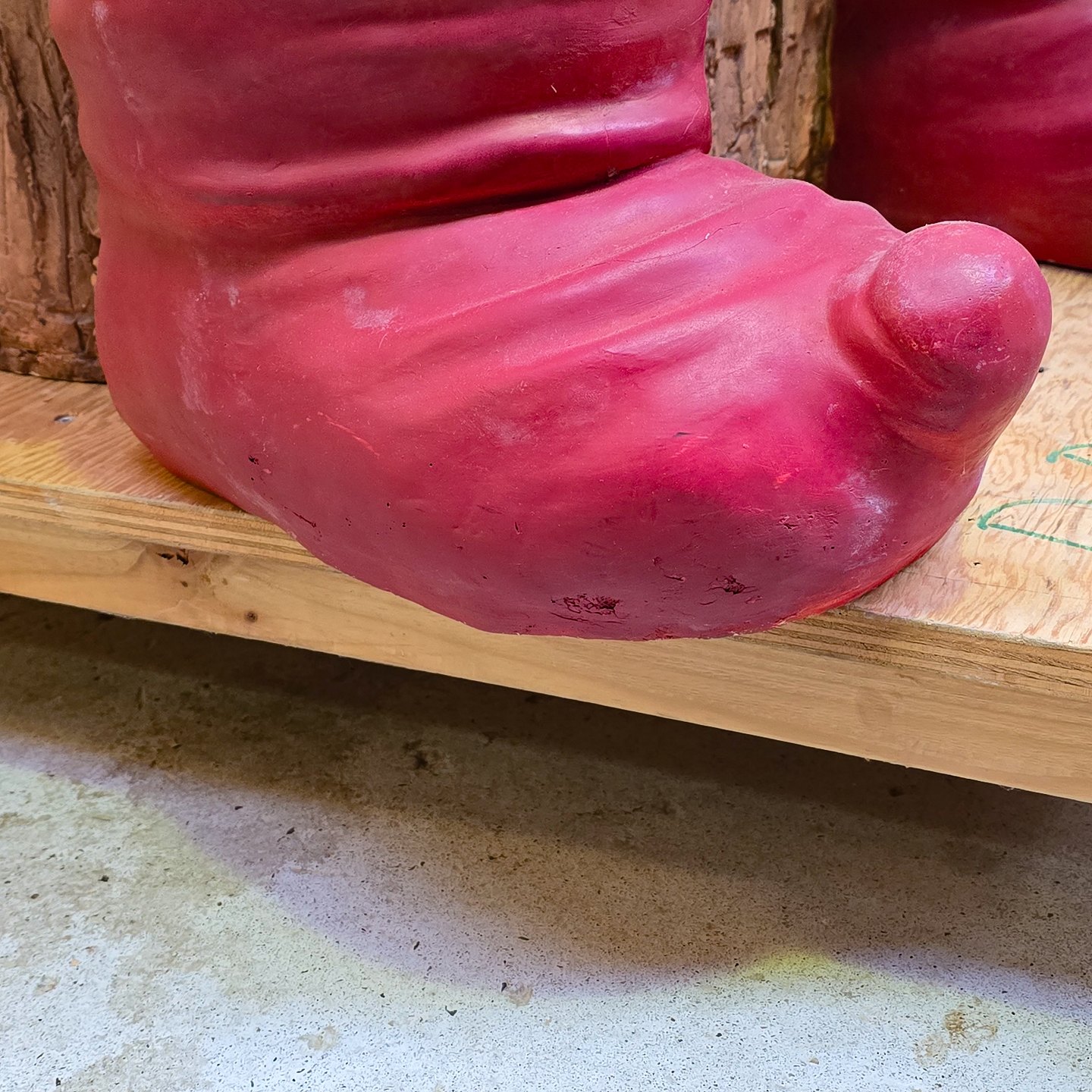 Stor udstillingsmodel i malet glasfiber med motiv af Klarborg nissen Oscar fra åretsnissepar år 2001, som sidder på en træstub. Figuren er fremstillet i et begrænset antal.