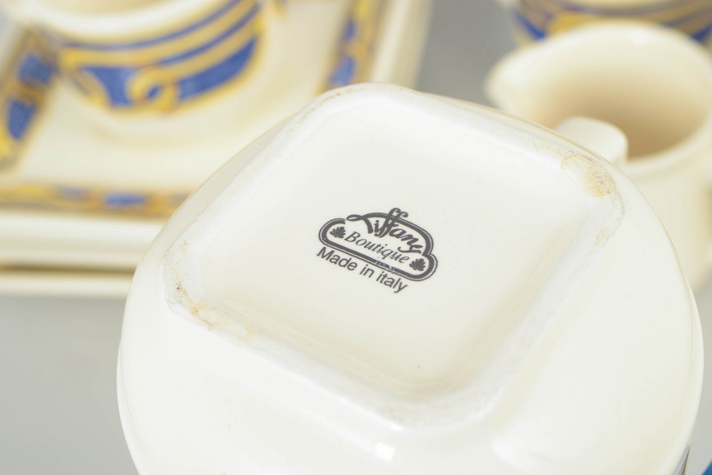 Tiffany Boutique, sæt af fire kaffekopper med underkopper, sukkerskål og flødekande.