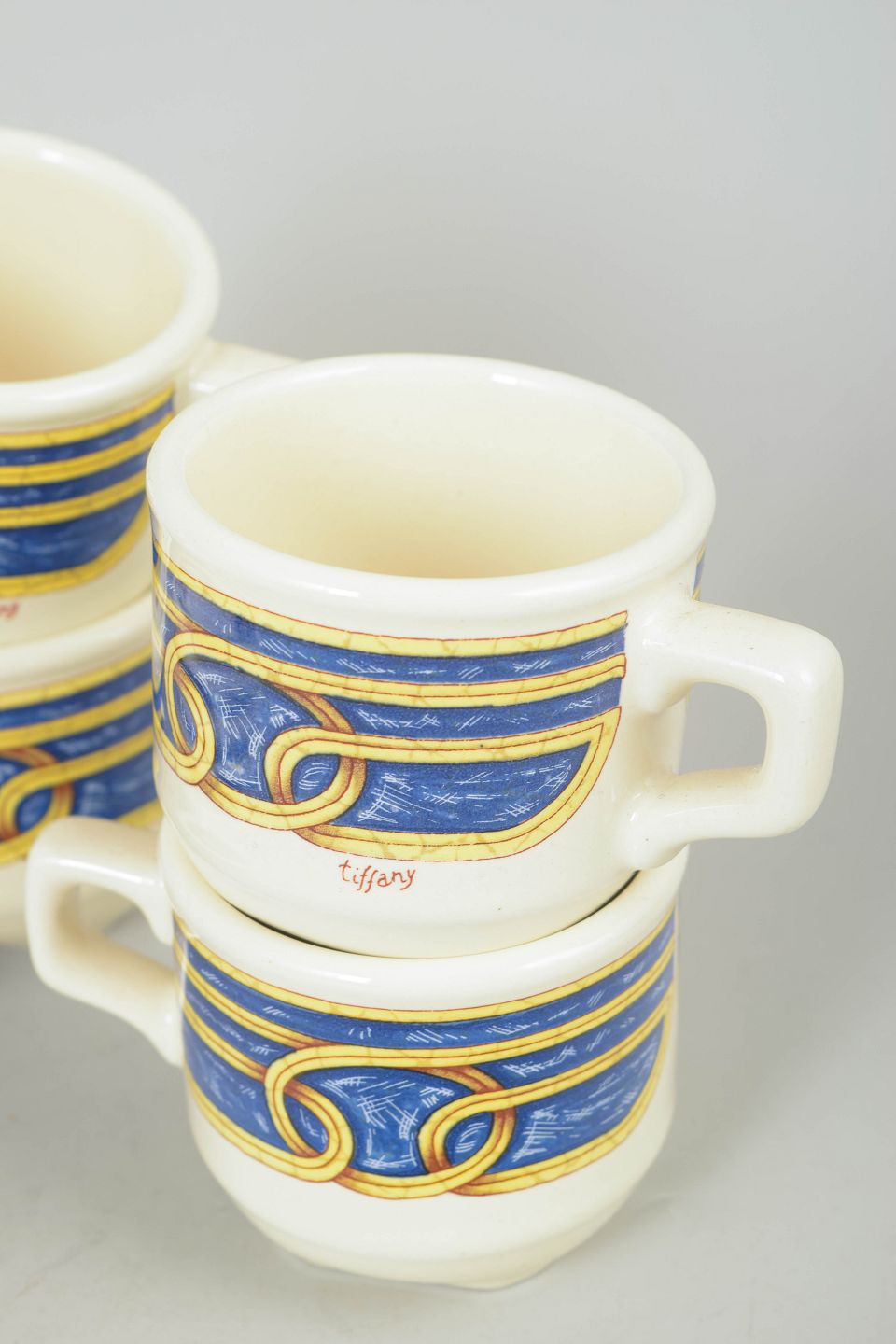 Tiffany Boutique, sæt af fire espressokopper med underkopper.