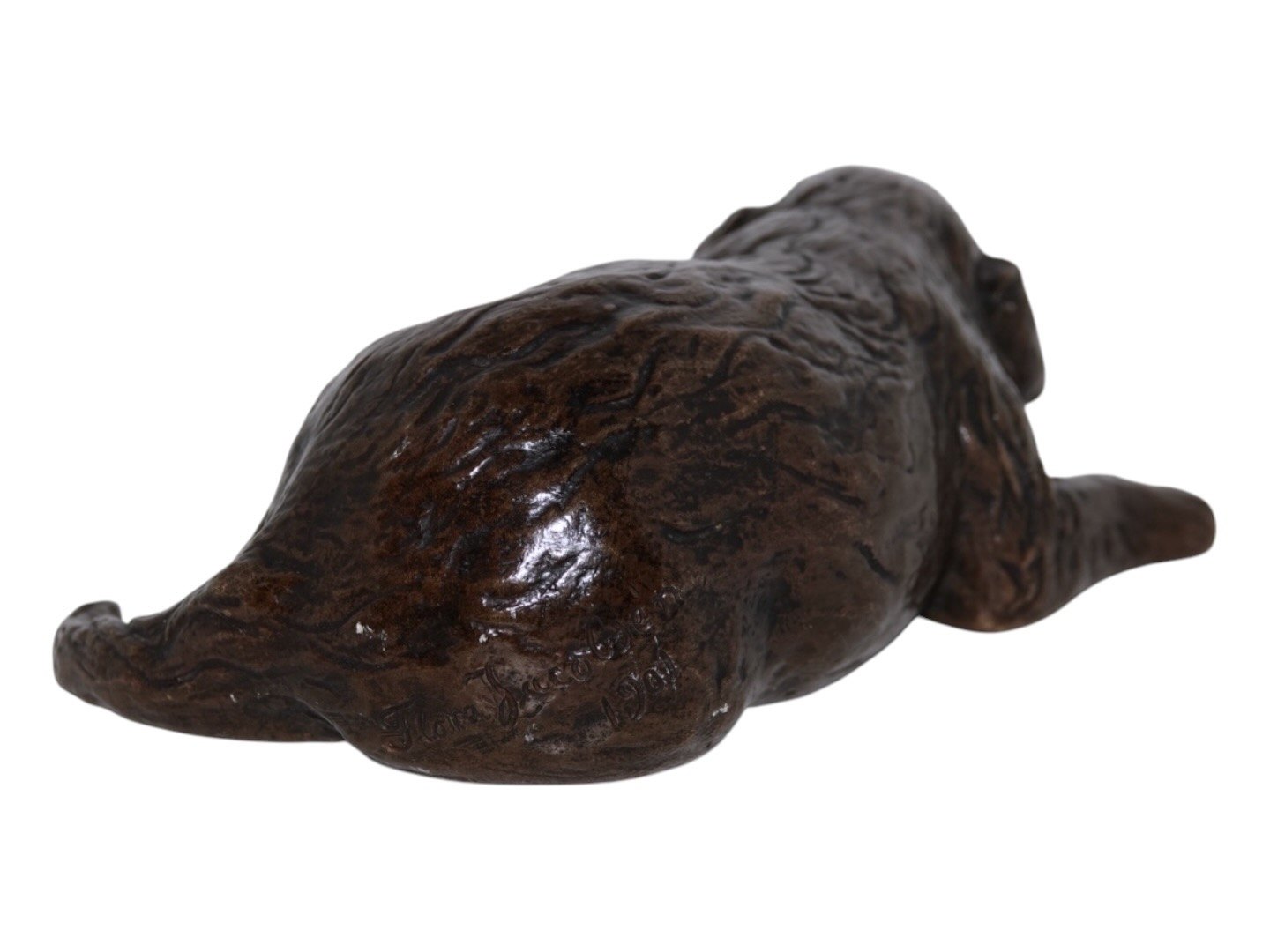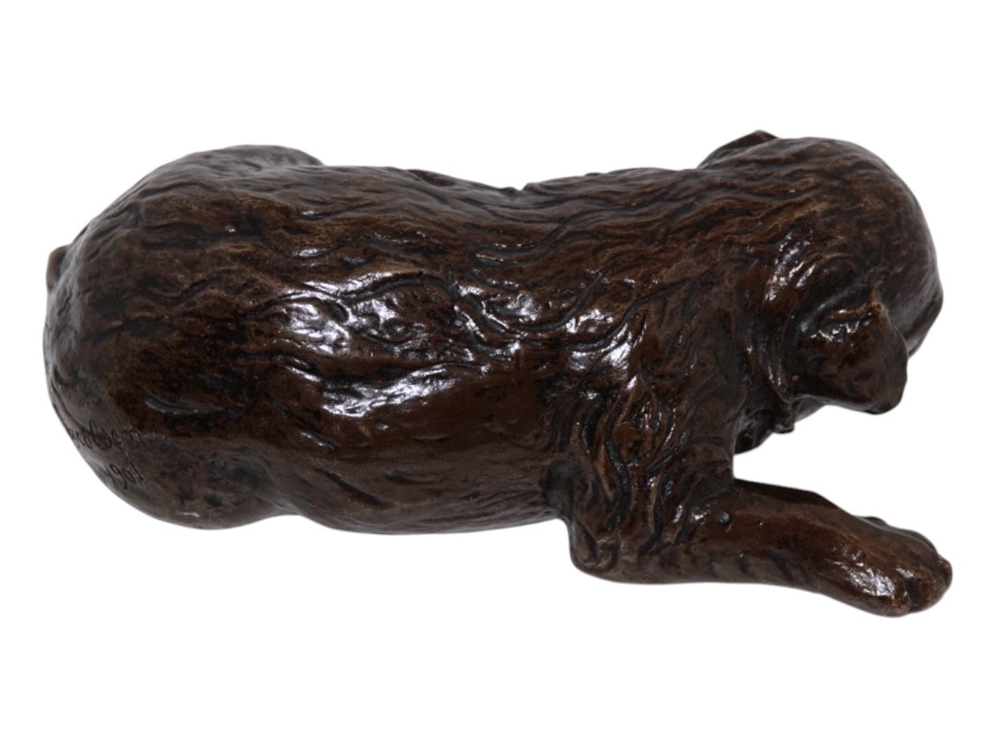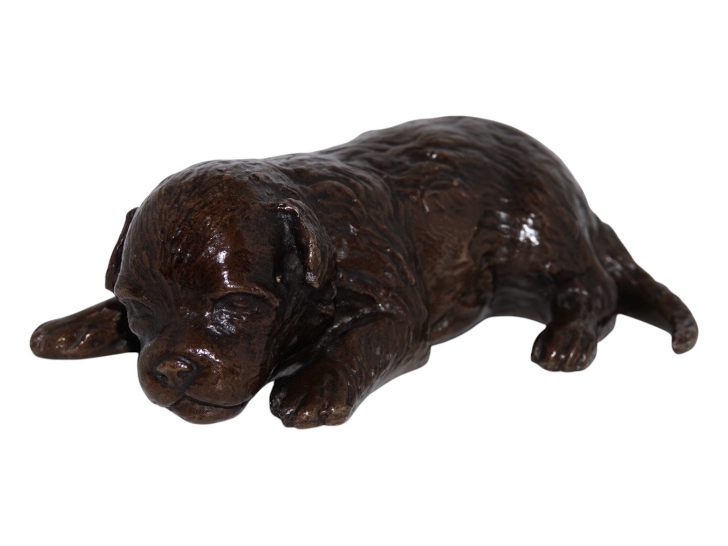 Flora Jacobsen (1863-1959), bronzefigur af hundehvalp fra 1901. Det er sandsynligvis en Golden Retriever eller en Sankt Bernhard.