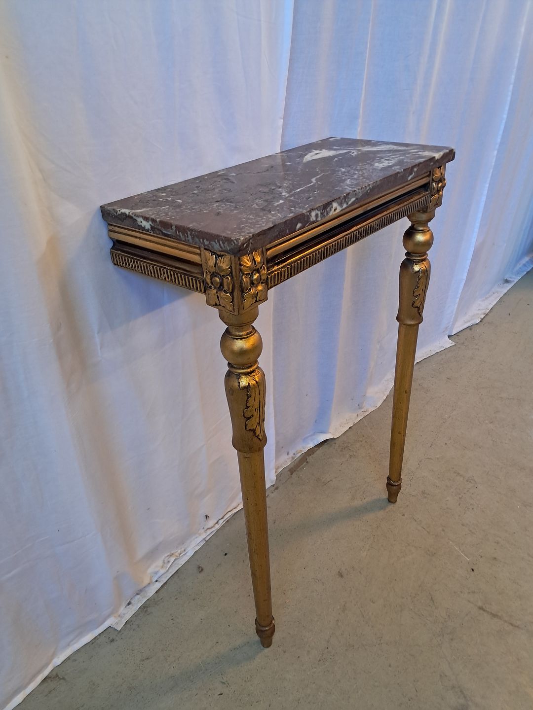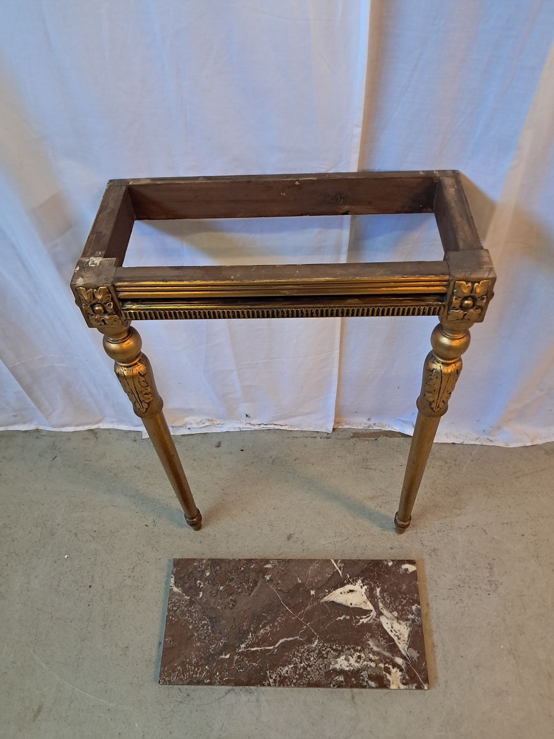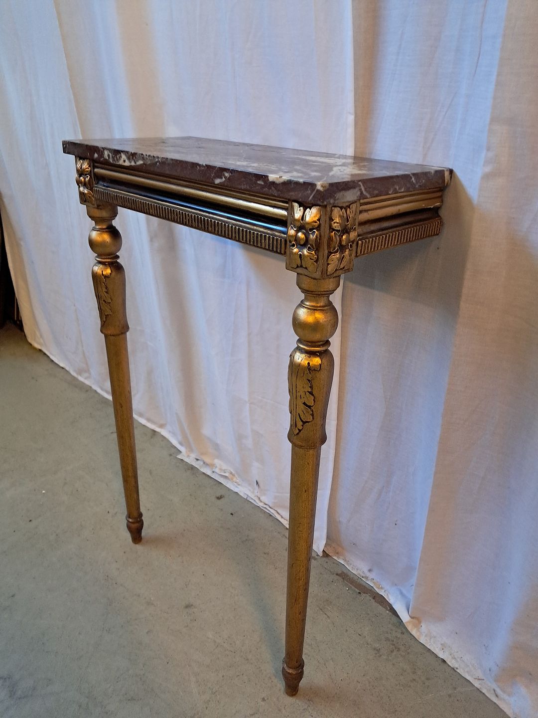 Guldmalet konsol med marmorplade, fra 1920erne.