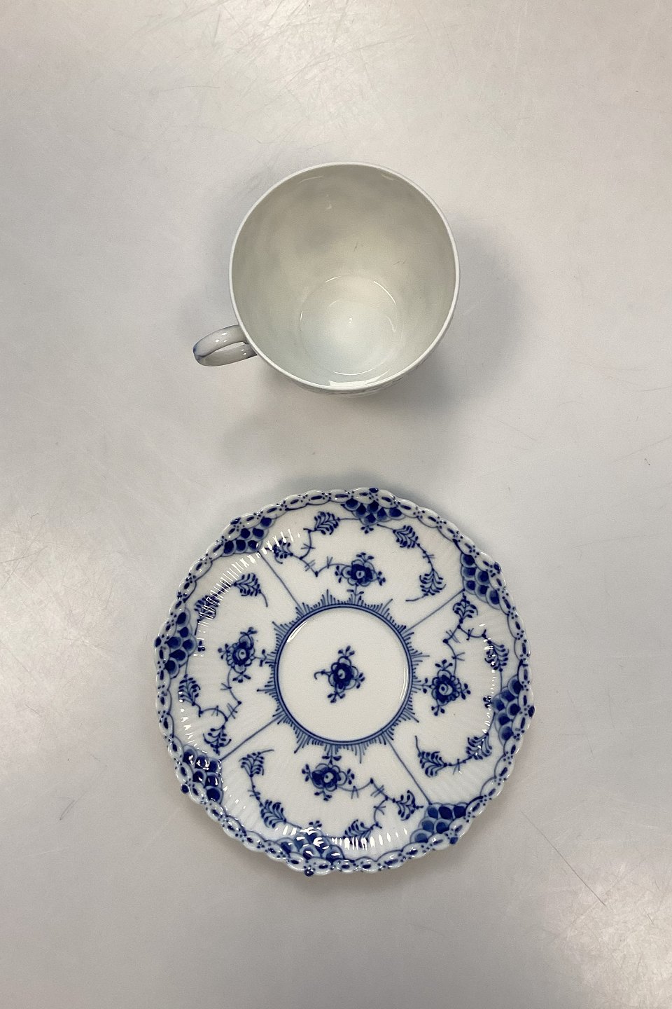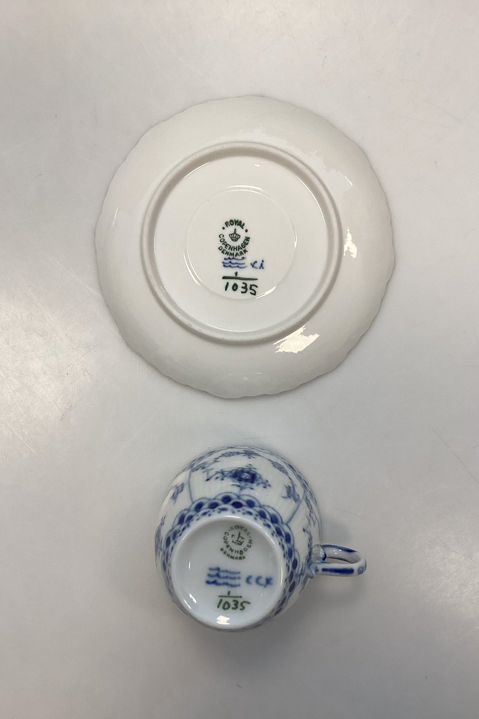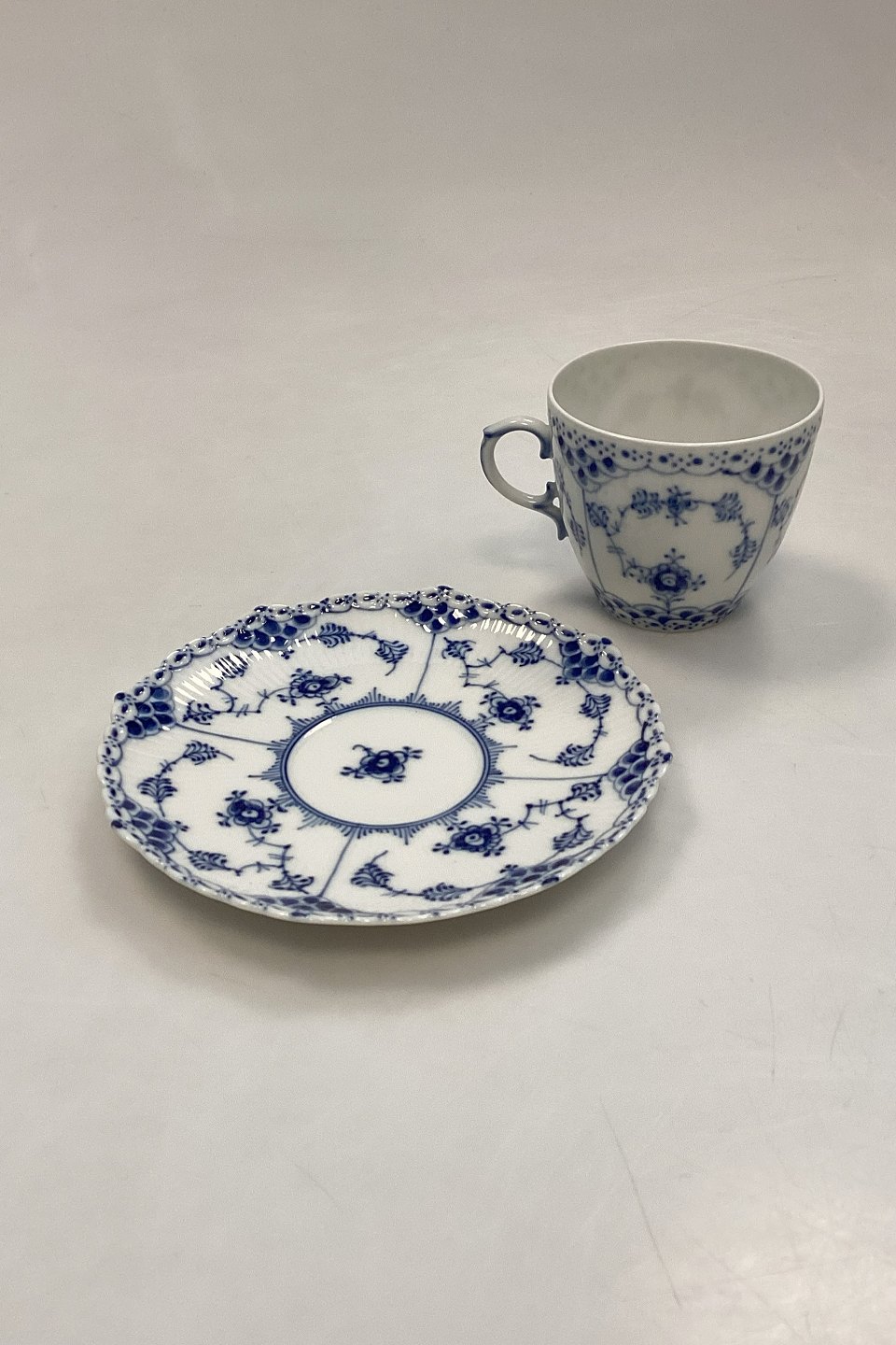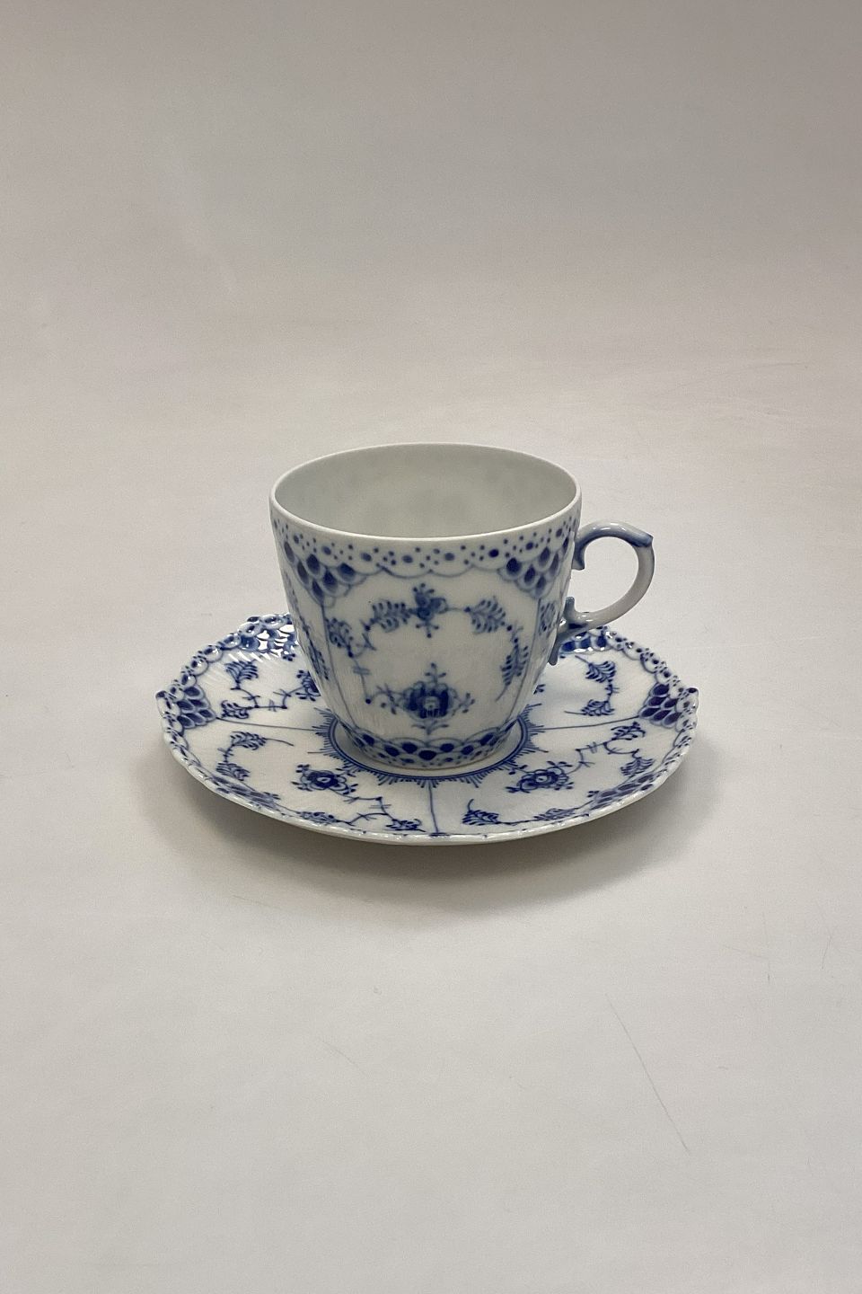 Royal Copenhagen Blue Fluted Full Lace Coffee Cup and Saucer No. 1035