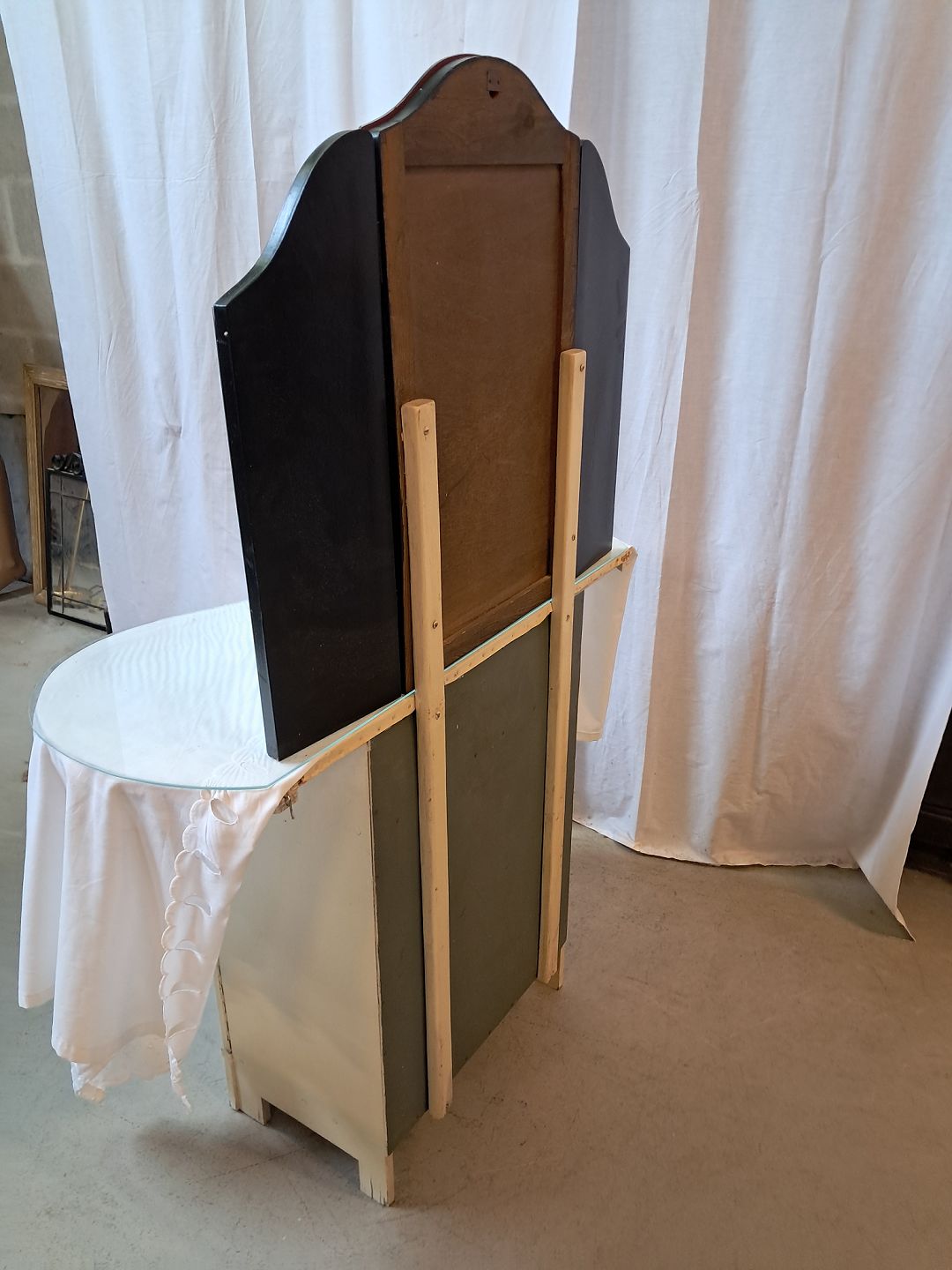 Marie Antorinette sminkebord med spejl og glasplade, fra 1950erne.