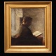 E. Klenø 1921-2005. "Interior with woman" Oil painting on canvas.