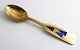 Sæt på 11 stk kaffeskeer i forgyldt sterlingsølv og blå emalje dekoreret med ...