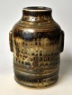 Saxbo, Eva Stæhr-Nielsen; Vase af stentøj dekoreret i blå-brunlig glasur, ...