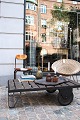 Gammelt fransk industrielt sofabord , en gammel industri pallevogn i jern ...
