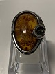 Sterling sølvring med cabochonslebet klart rav med indlejrede smådyr.
