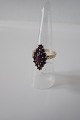 Statement ring i forgyldt sterlingsølv med grønne stene.