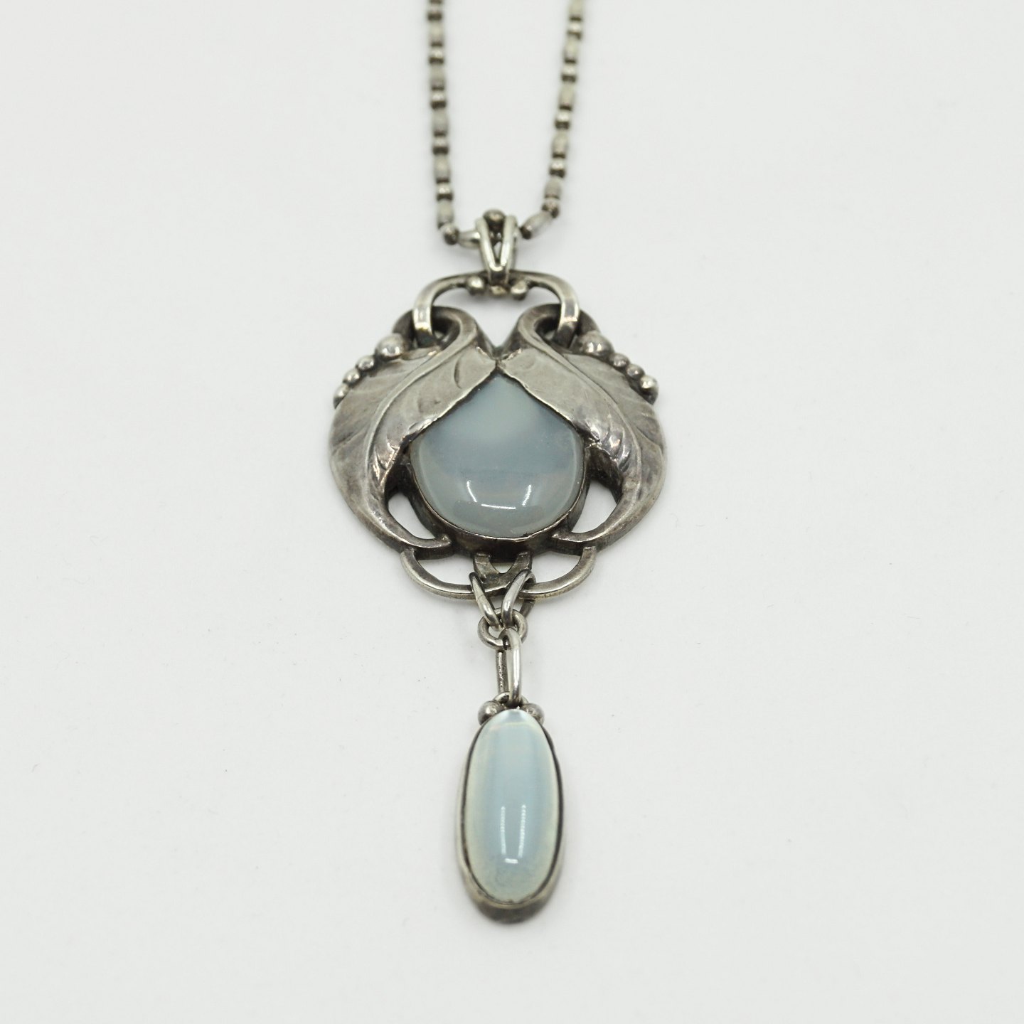 Evald Nielsen; Necklace in silver. Pendant with 2 moonstones.