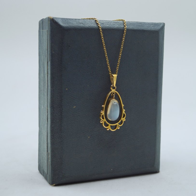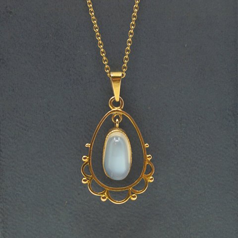 L. Erlandsen; A necklace in 14k gold set with a moonstone. 1920's.