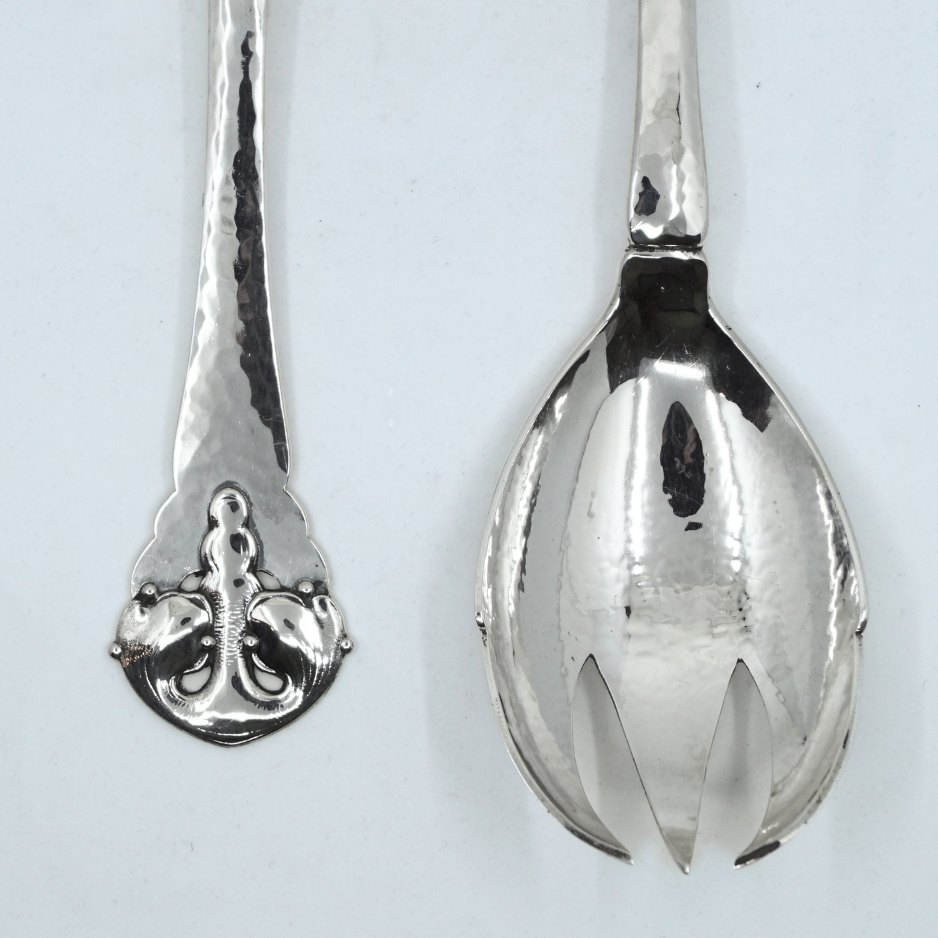 Grann & Laglye; Large salad set of hammered silver.