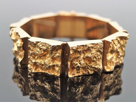 Kraftigt håndsmedet armbånd af 14 kt. guld sammensat af 9 led.