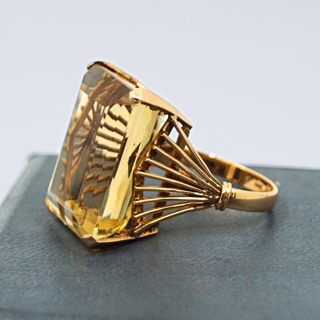 Cocktail ring af 18 kt. guld med topas. Ring str. 54.