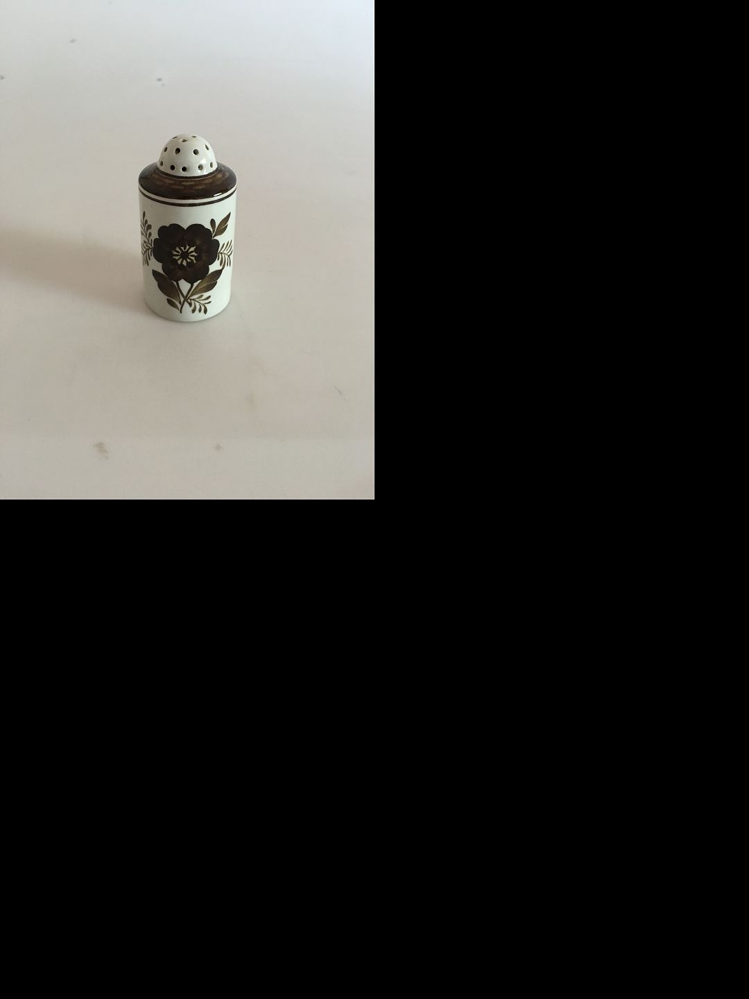 Royal Copenhagen Brun Tranquebar Salt Bøsse No 1009. 8 cm høj.