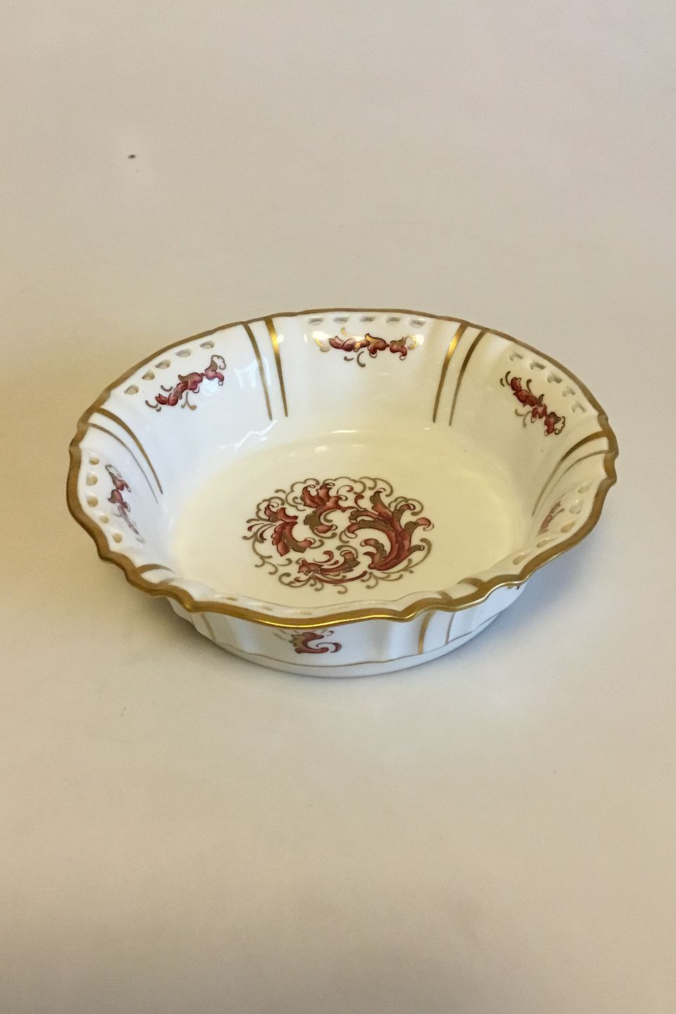 Dahl Jensen Dronning Round Bowl with Gold and Pierced Border. Measures 18 cm / 7 3/32 in.