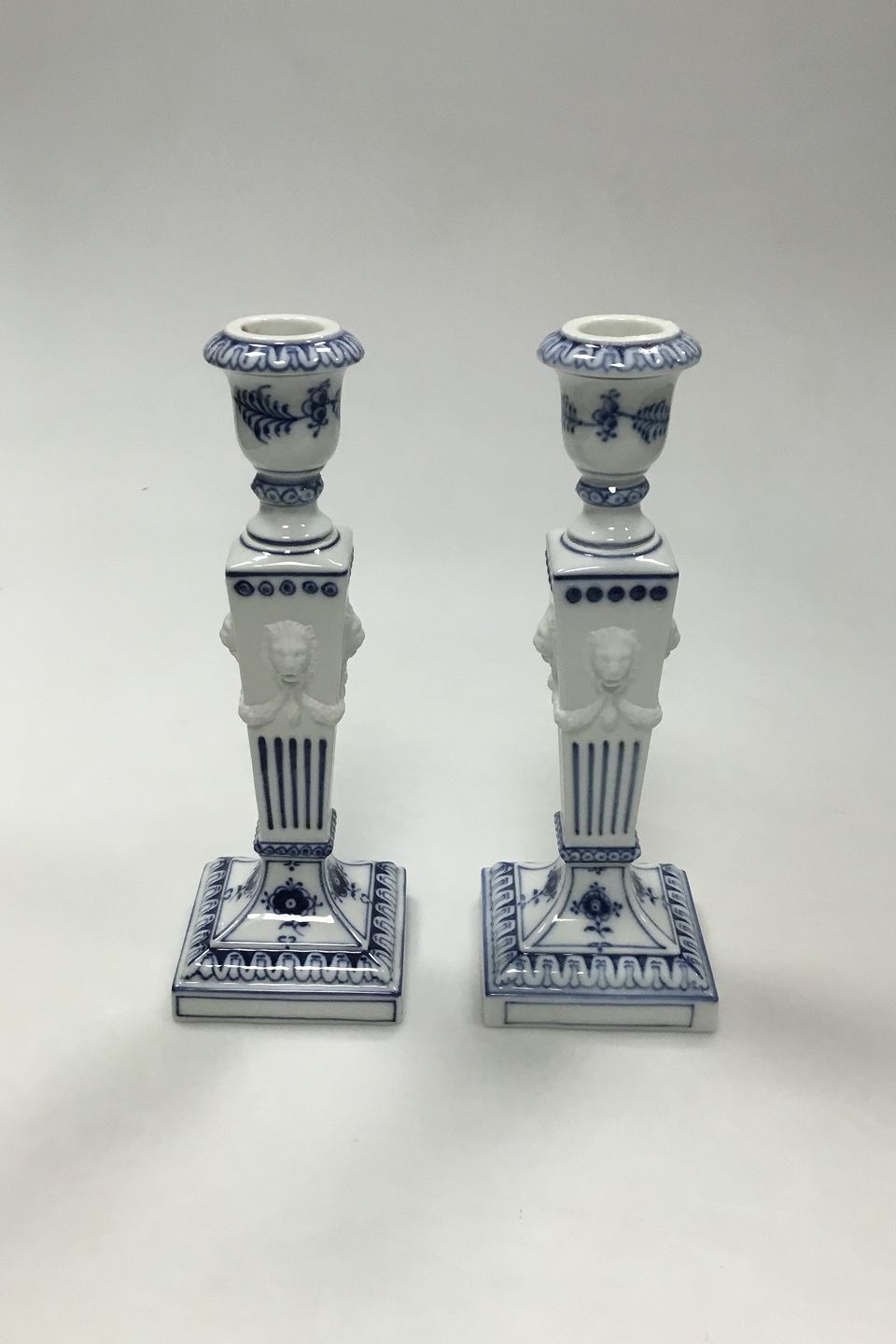 Royal Copenhagen Blue Fluted Plain A pair of Candle Holders No 15. 1st Quality. Measures 22.5 / 8 55/64 in.