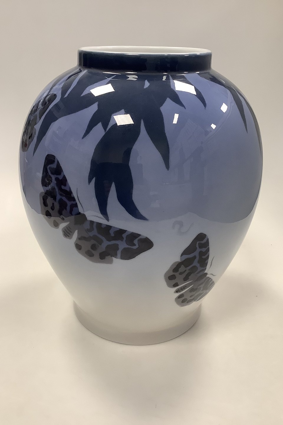 Royal Copenhagen Art Nouveau Unika Vase by Carl Mortensen with a butterflies from 1898 no 6833