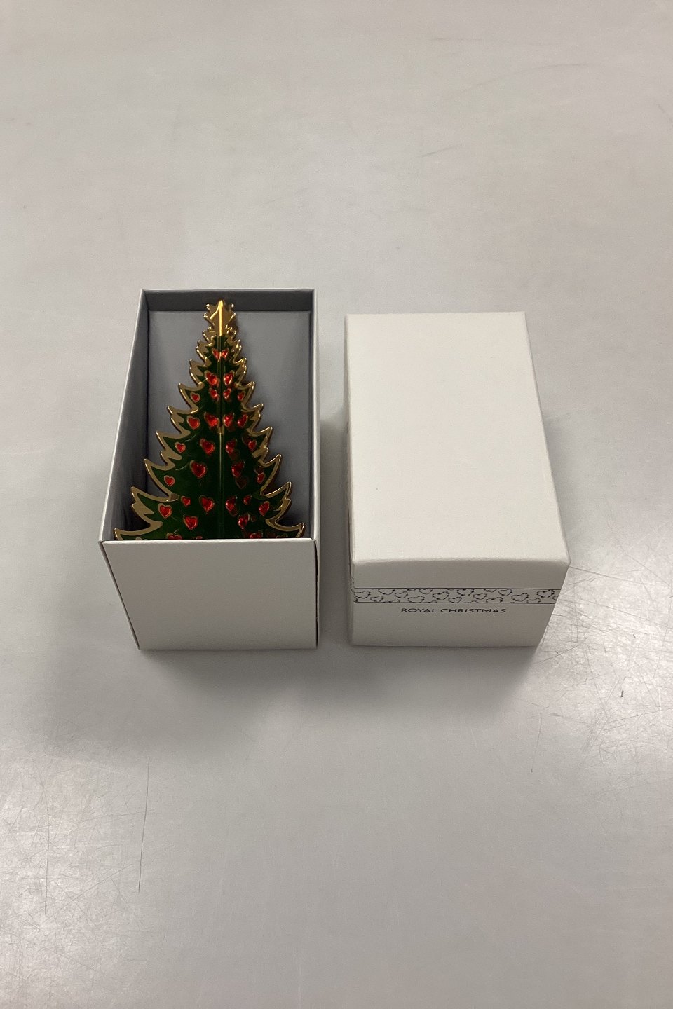 Royal Copenhagen Christmas Lille Juletræ. Bordpynt i messing med grøn emalje og røde hjerter.