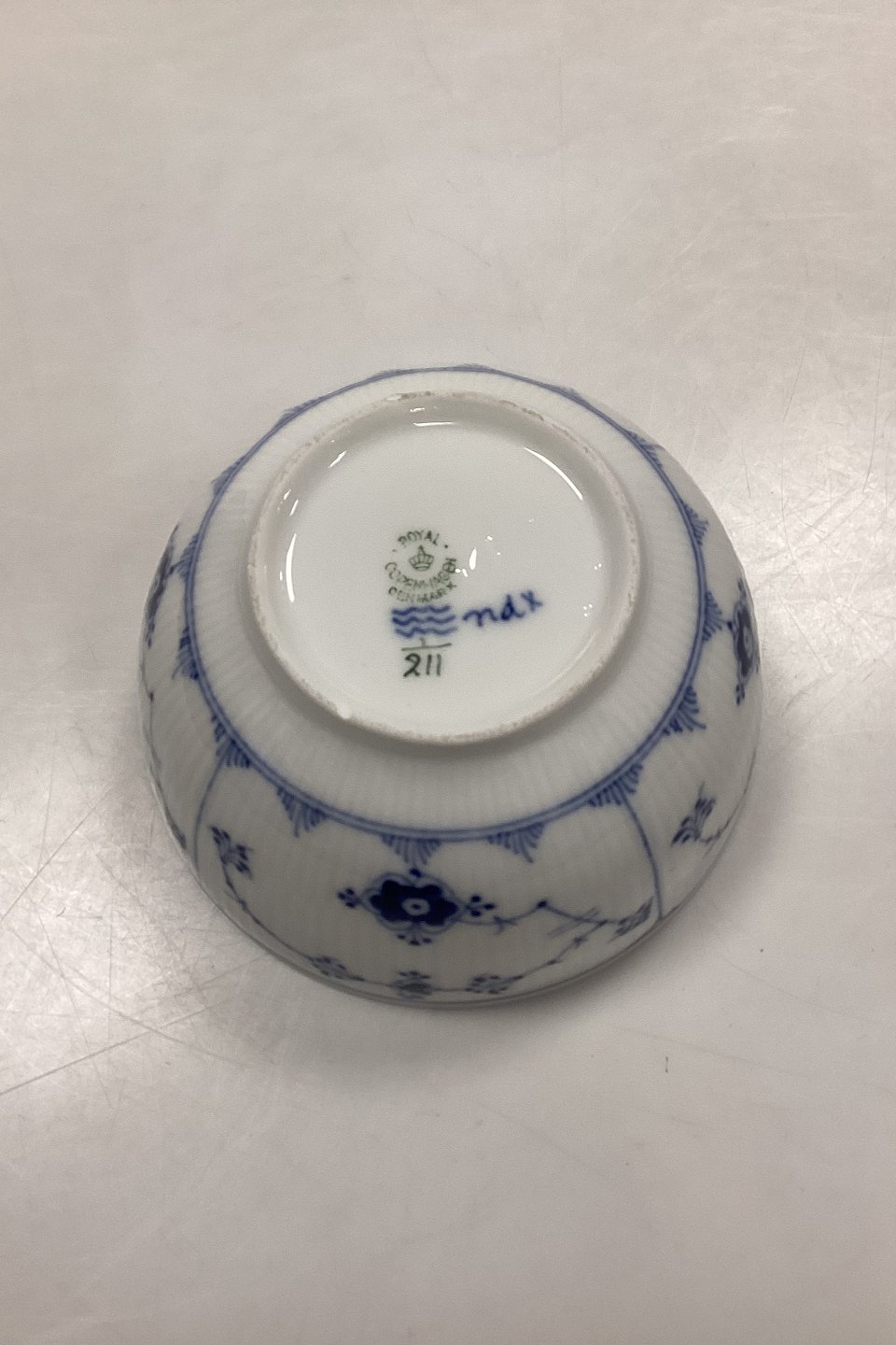 Royal Copenhagen Musselmalet Riflet Skål No. 211. Har 2 afslag i bunden, se foto.