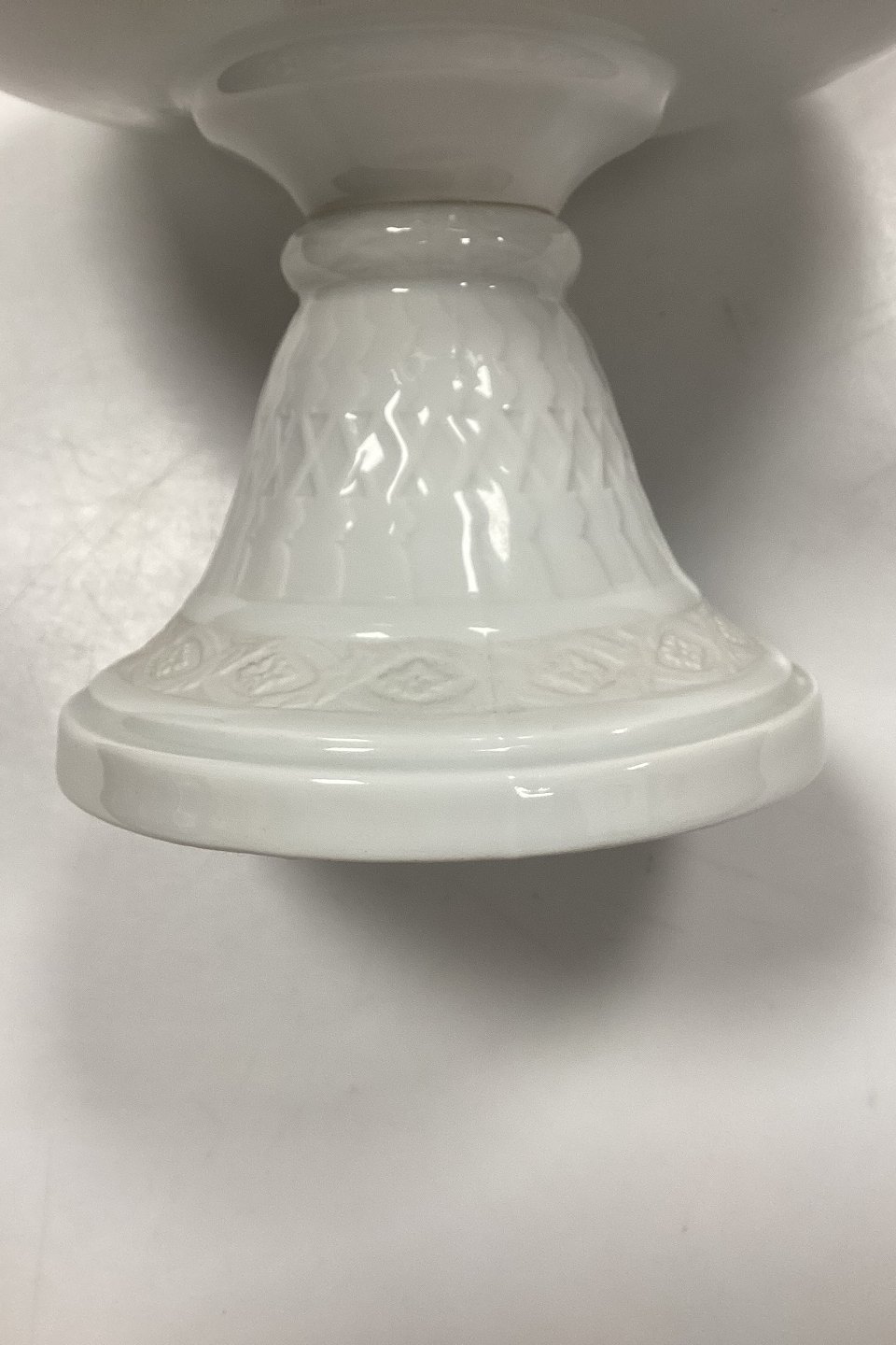 Royal Copenhagen White Fan Footed Bowl No. 11549. Measures 16 cm x 23 cm / 6.29 in. x 9.05 in. 2nd Quality. Joint in the foot can be seen slightly under the glaze, see photo.