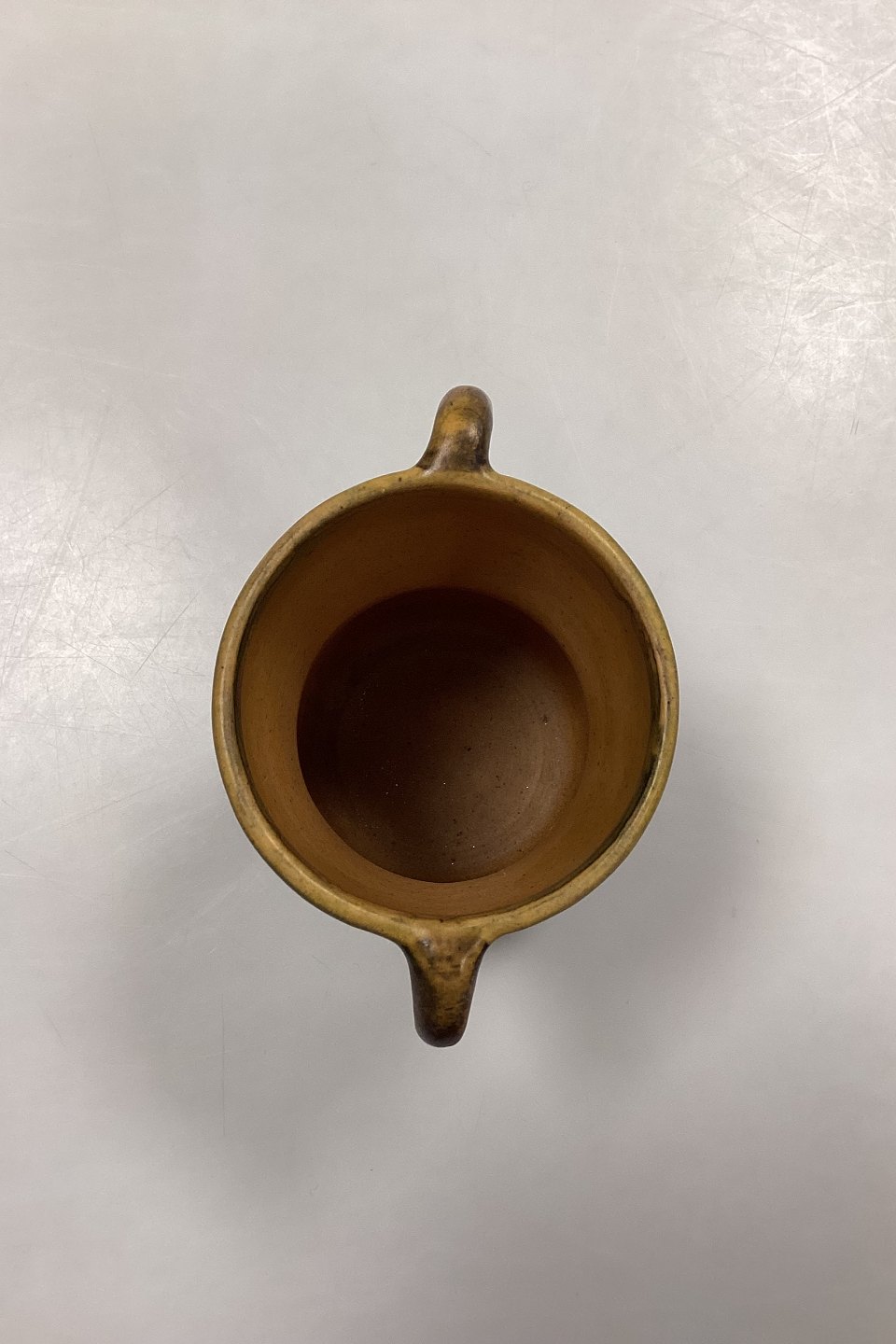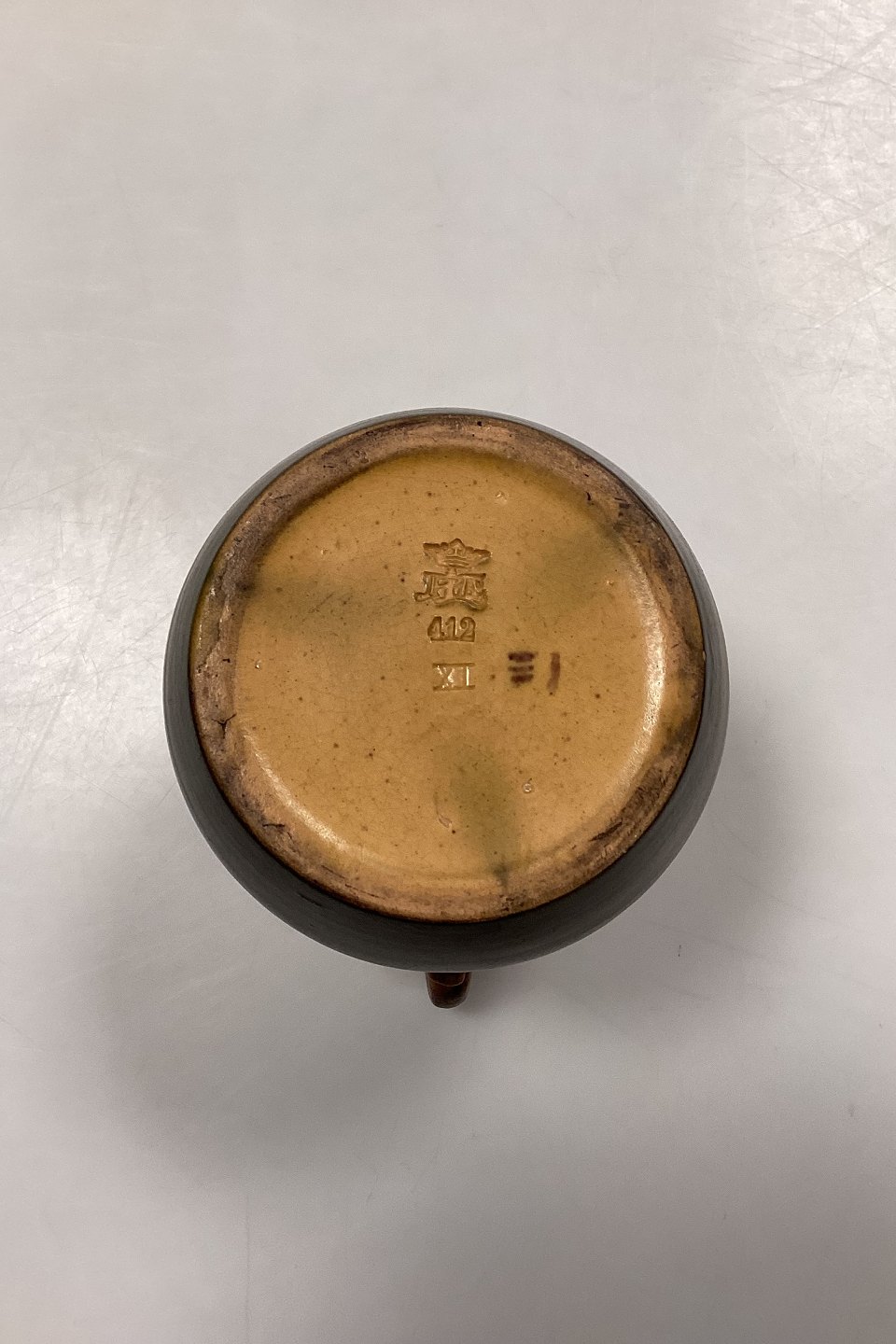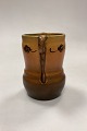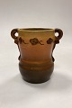 P. Ipsens Enke Vase No. 412. Stentøj med gul og brun glasur, med prægede blomster i kanten.