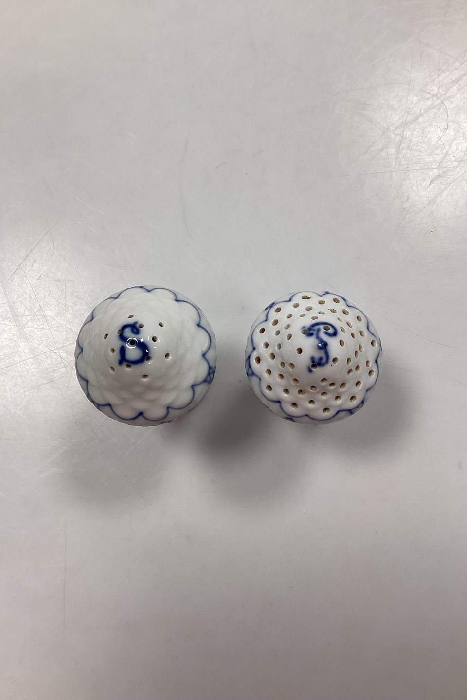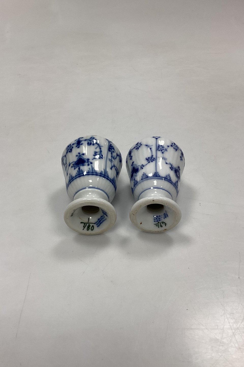 Royal Copenhagen Musselmalet Riflet Salt- og Pebersæt No. 467/480. Uden propper (hørepropper kan anvendes)