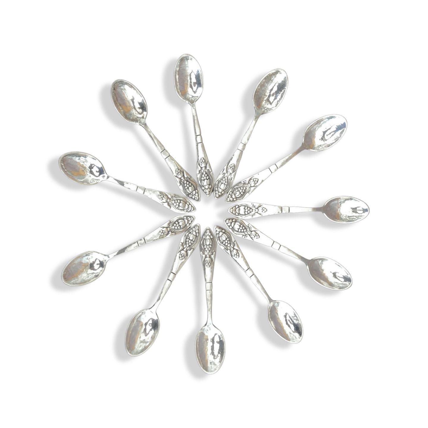 Georg Jensen. 11 pcs. coffeespoons of silver. Stamped Georg Jensen, Copenhagen, 10 and GI 830s with monogram from 1915-1930.L. 11 cm.