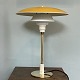 Itemnumber: 552924Poul Henningsen PH 4/2.75 table lamp with cast shade holder. Upper shade of original gold-lacquered metal Ų 40 cm., Middle and lower shade of opal glass. Socket, switch housing and top screw of white Bakelite. Stem, foot and top cover of patinated brass. Manufactured at Louis Poulsen in the 1940s. Mounted with brown cloth cord. Appearance in good condition, however with minor bakelite chipping at socket housing and top screw. H. 49 cm.