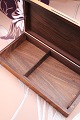 Oblong box in rosewood decorated with silver inlay with a motif of a small elephant carrying a tree trunk...