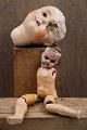 Gammel fransk 1800 tals dukke , hoved med glas øjne , krop og ben i bemalet papmache med en fin gammel patina. H: 31cm.