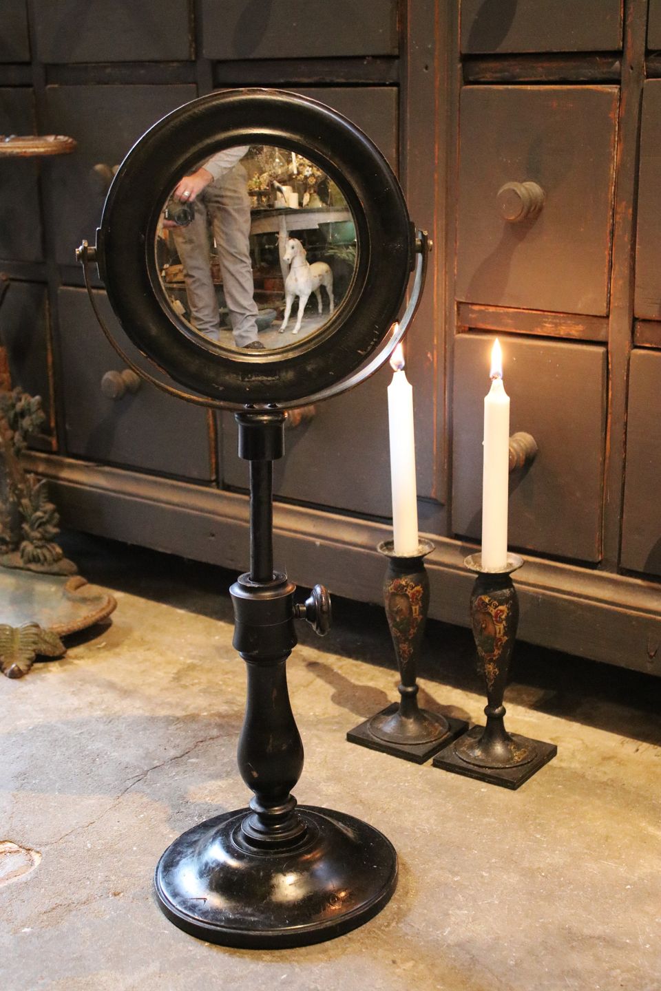 Old French 19th century tilting mirror in black painted wood with double mirror glass from a jewelry store...