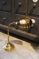 Old table lamp in brass with clam shaped lampshade.