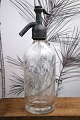 Decorative, rare French mini glass siphon from the early 1900s in clear glass with engraved writing on the side of the siphon and a fine patina. The siphon comes from an old café. Height: 27cm.