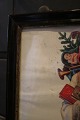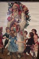 Decorative, old picture with a motif of Santa Claus handing out gifts to children, framed in an old black wooden frame with a fine patina. Measurements: 49x38cm.