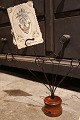 Displayet er i sort metal på træ fod. H: 29cm. B: 35cm.