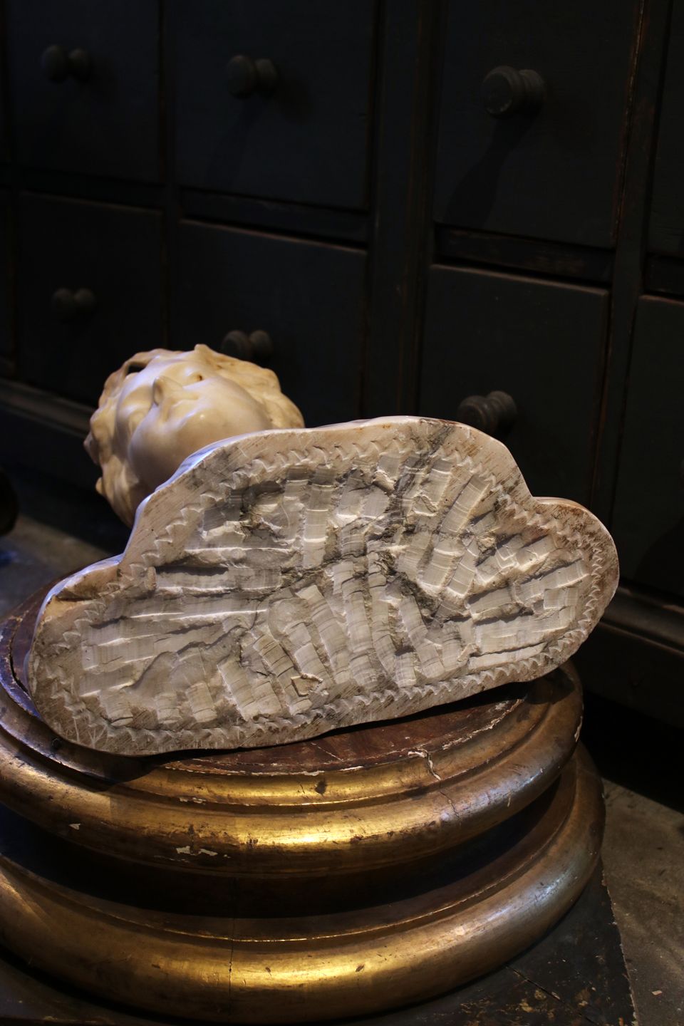 in carved solid marble. H: 36.5cm. W: 35cm. D: 19cm.