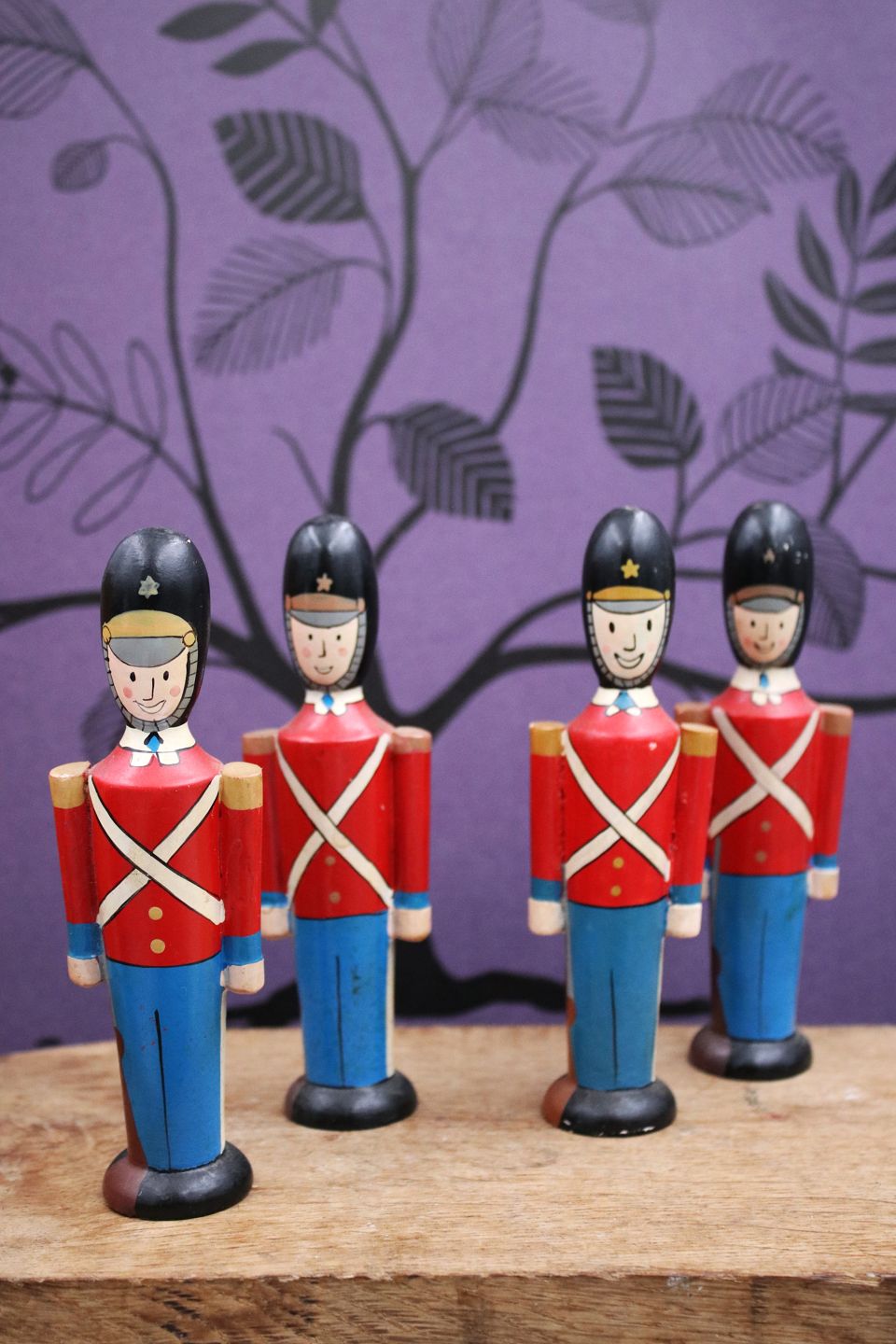 Decorative, old Guard Hussars in full uniform in painted wood. H: 13.5cm. (4 pcs. only sold together) Item number: 4 Gardehusarer