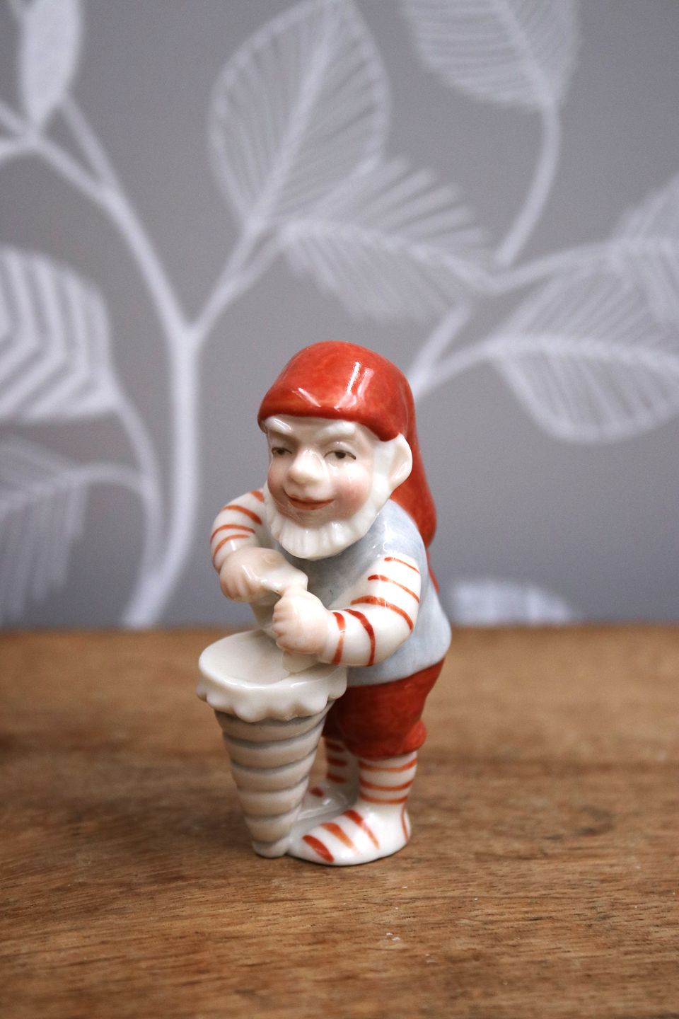 Royal Copenhagen Pixie in porcelain, no.762. Pixie a cuddle house. Height: 7cm. Item number: RC# Pixie nisse nr.762