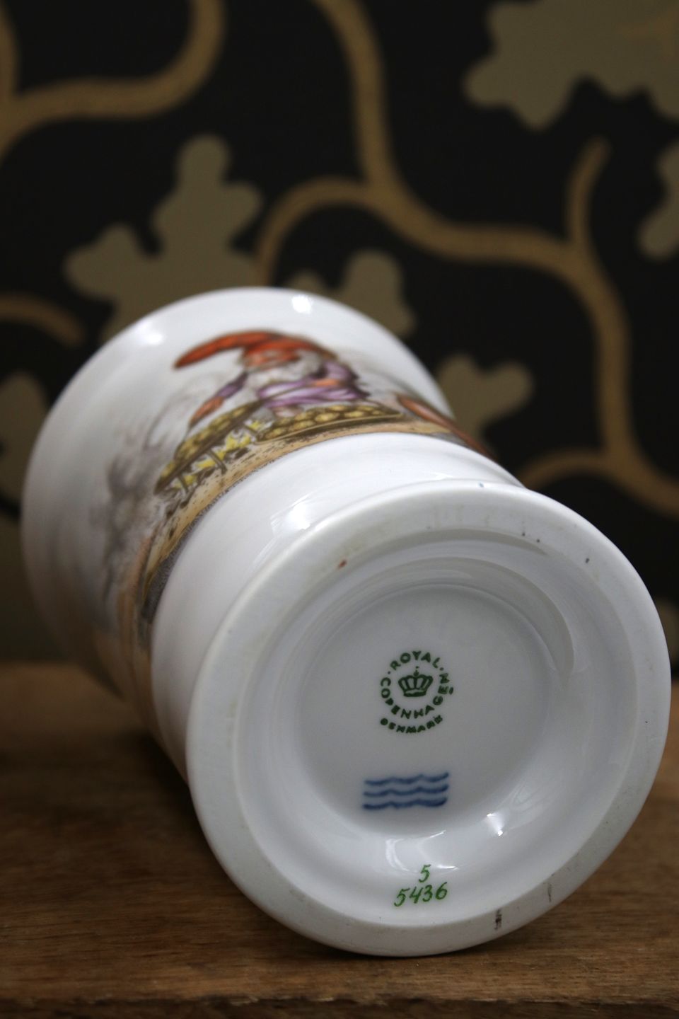 Royal Copenhagen Julekrus i porcelæn med julemotiv. Dekorations nummer : 5/5436. 1.sort. H:10,5cm. Dia.:8cm. Emne nummer: RC# 5/5436