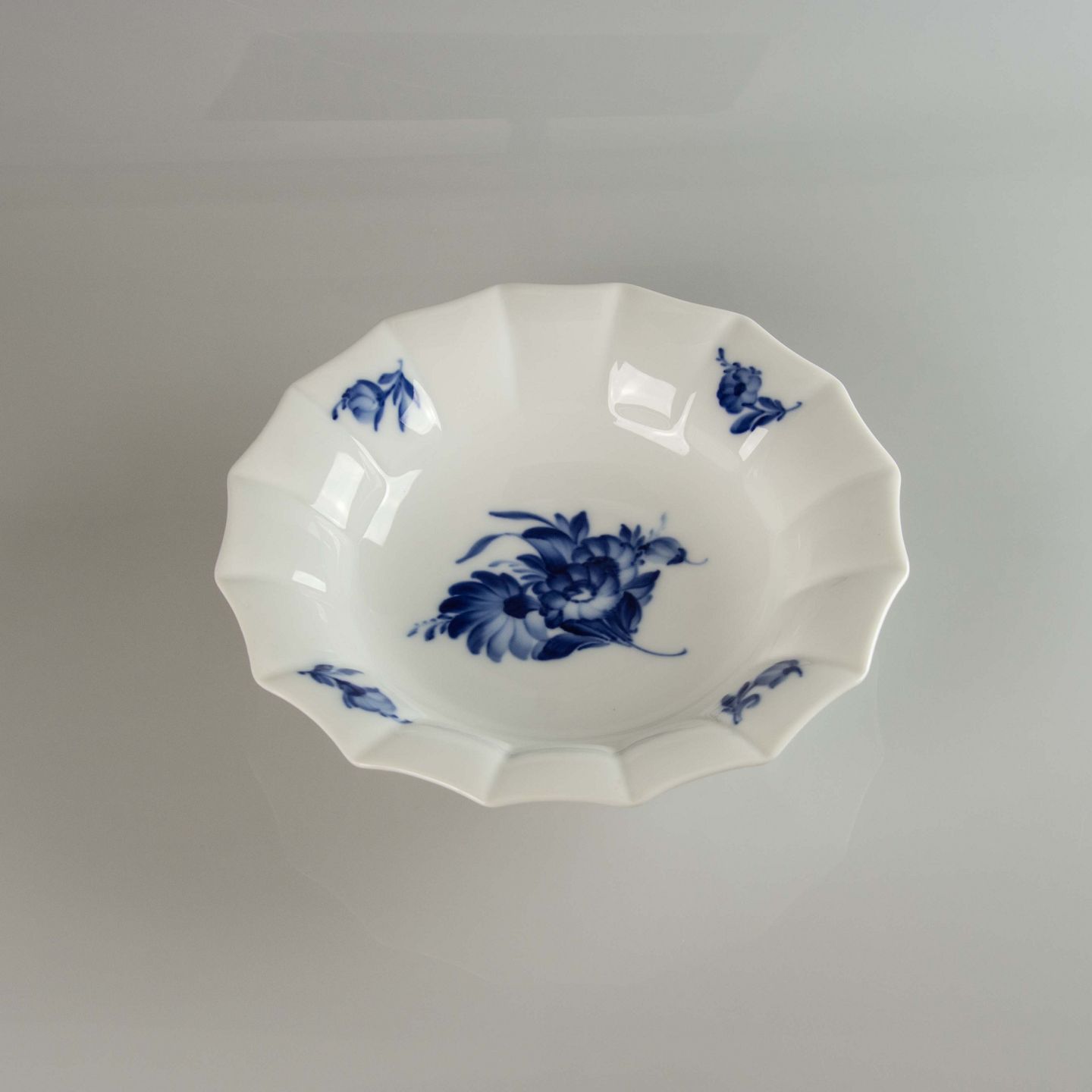 Rund skål i kongeligt porcelæn fra stellet Blå blomst kantet. Nr. 10/8557