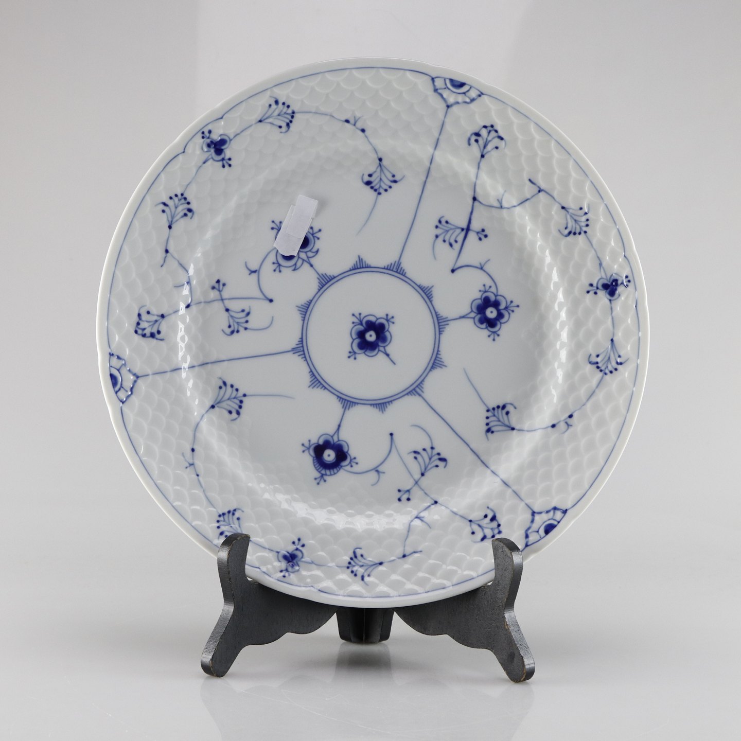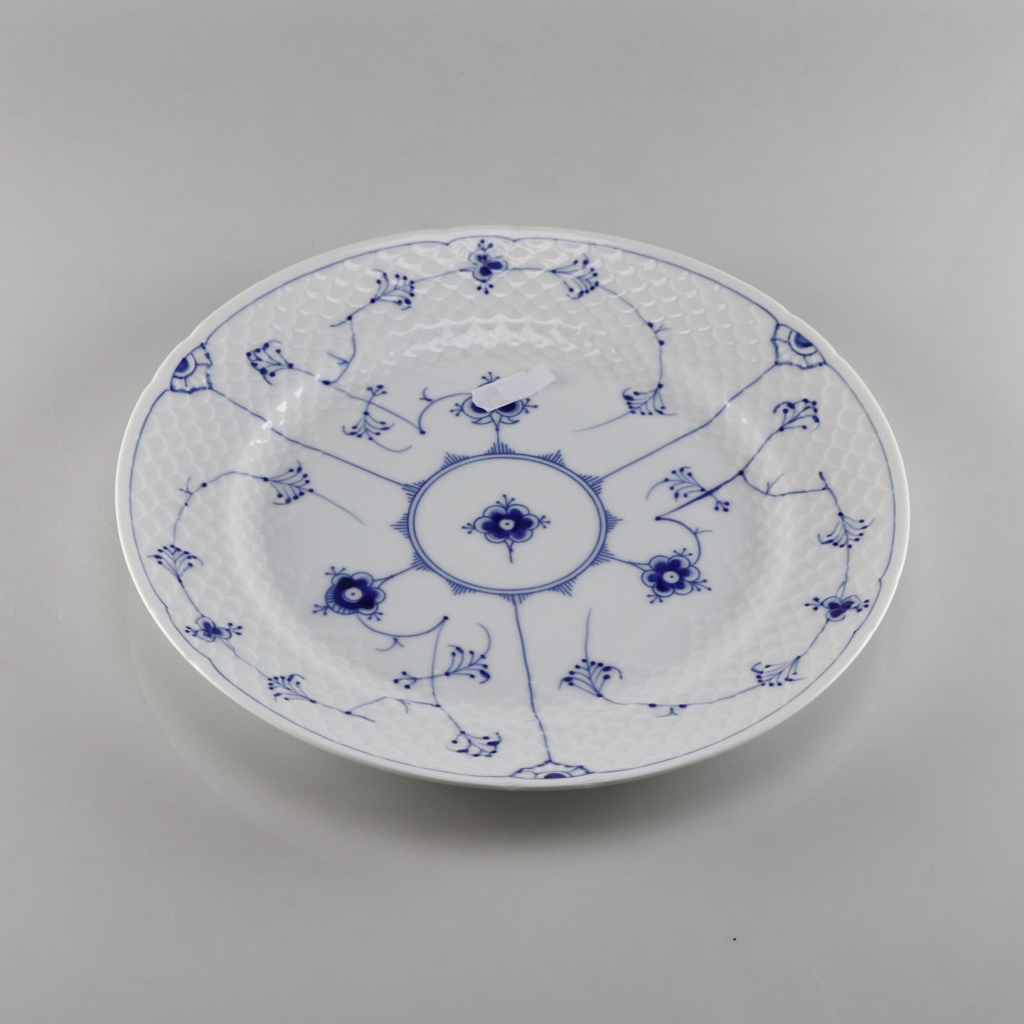 Hvidt porcelæn i skelform med dekoration af blå ranker