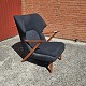 Sæde og ryglæn beklædt med gråt stof, der ikke er i god stand