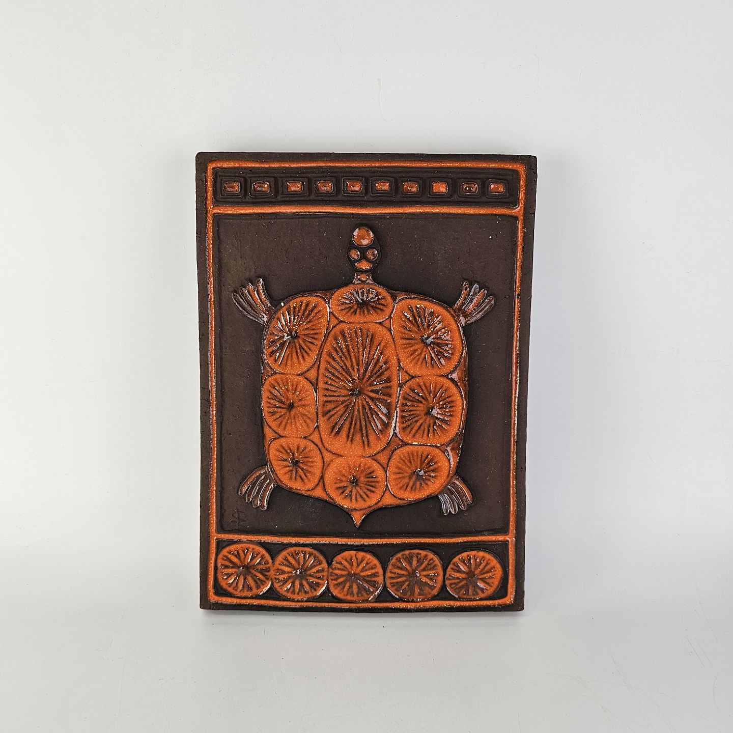 Relief af keramik, med motiv af en skildpadde set oppefra.