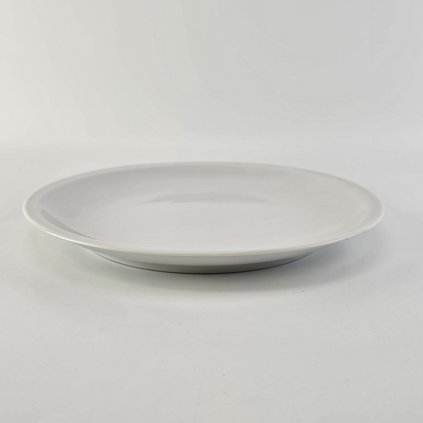 Middagstallerken i porcelæn fra stellet Hvid Glasurfarvet