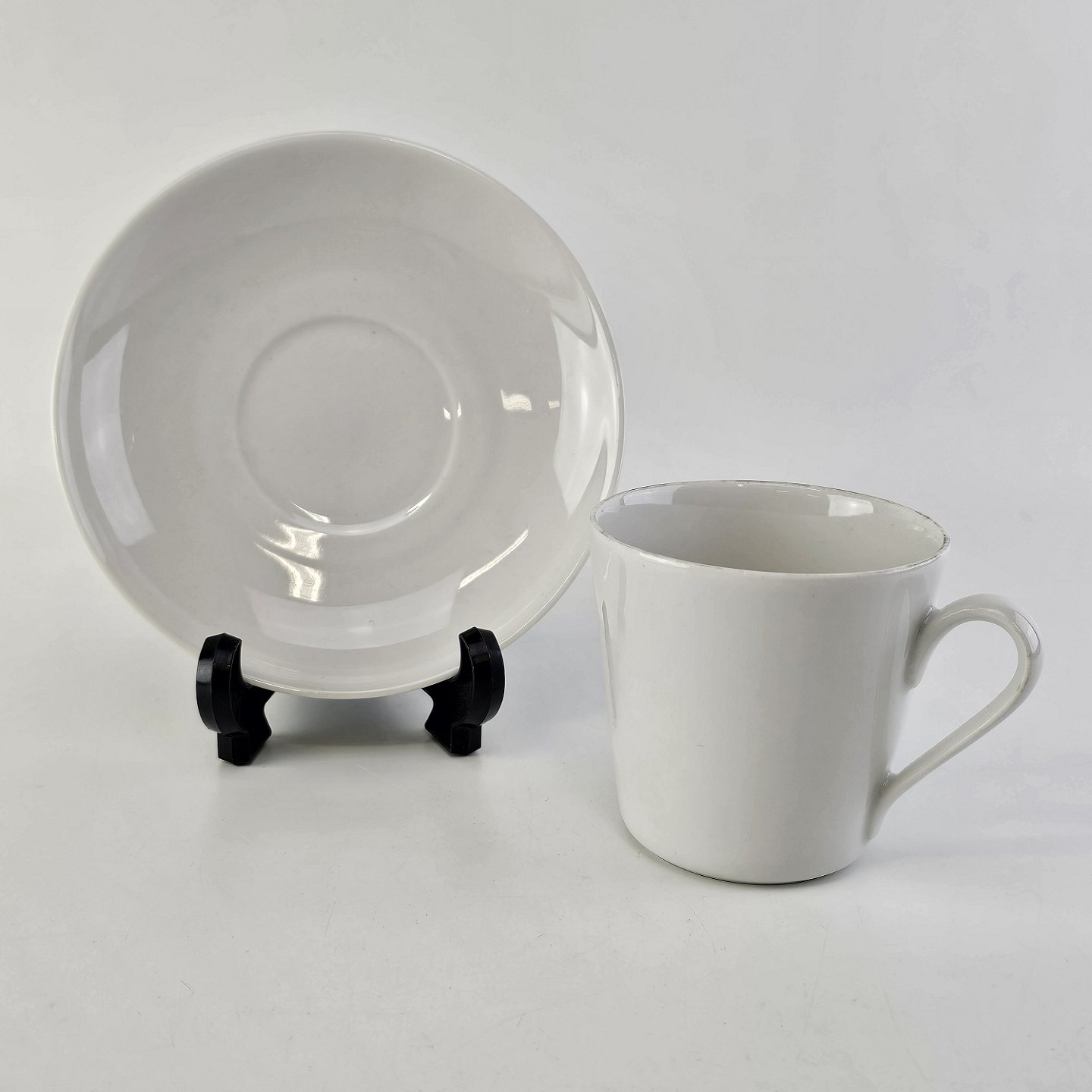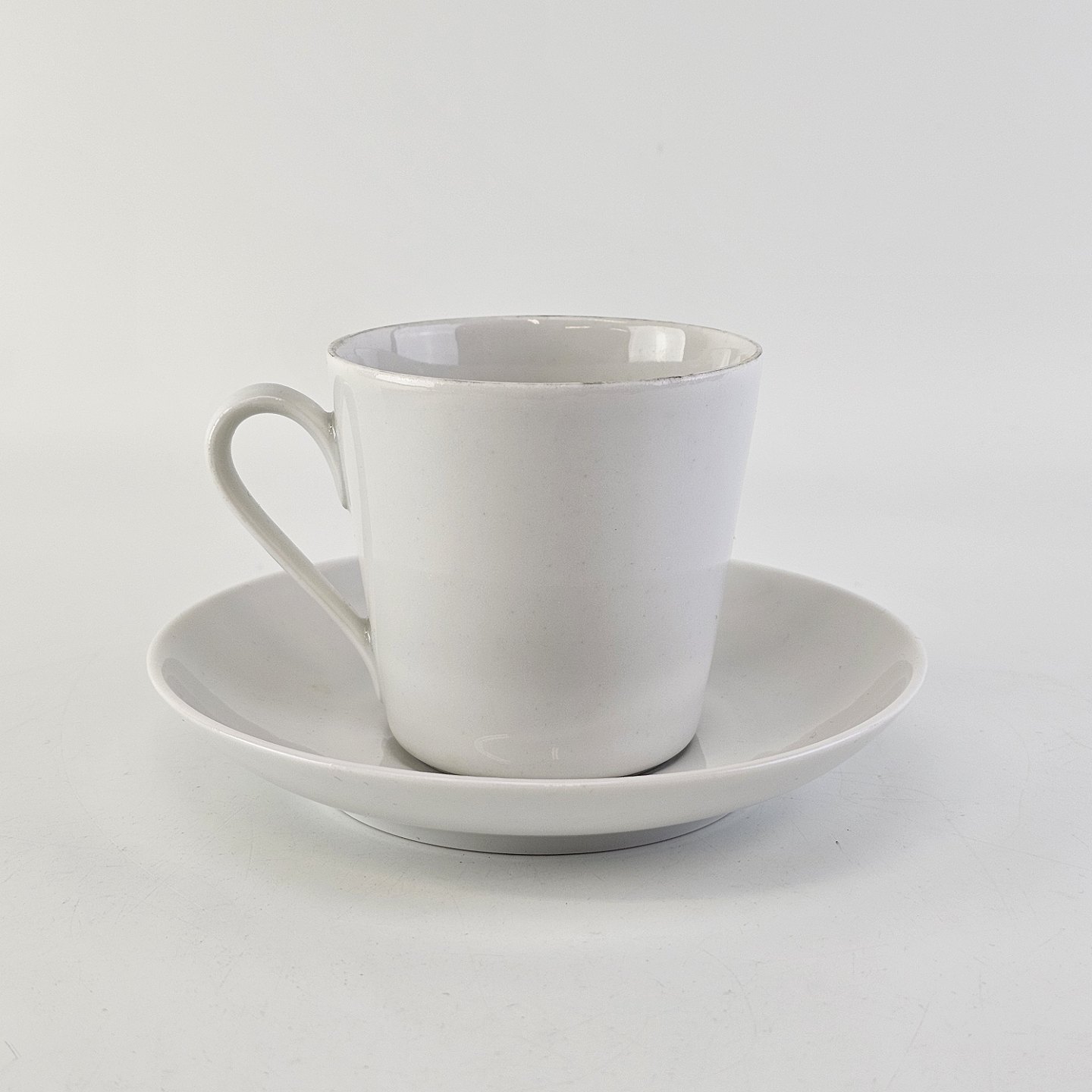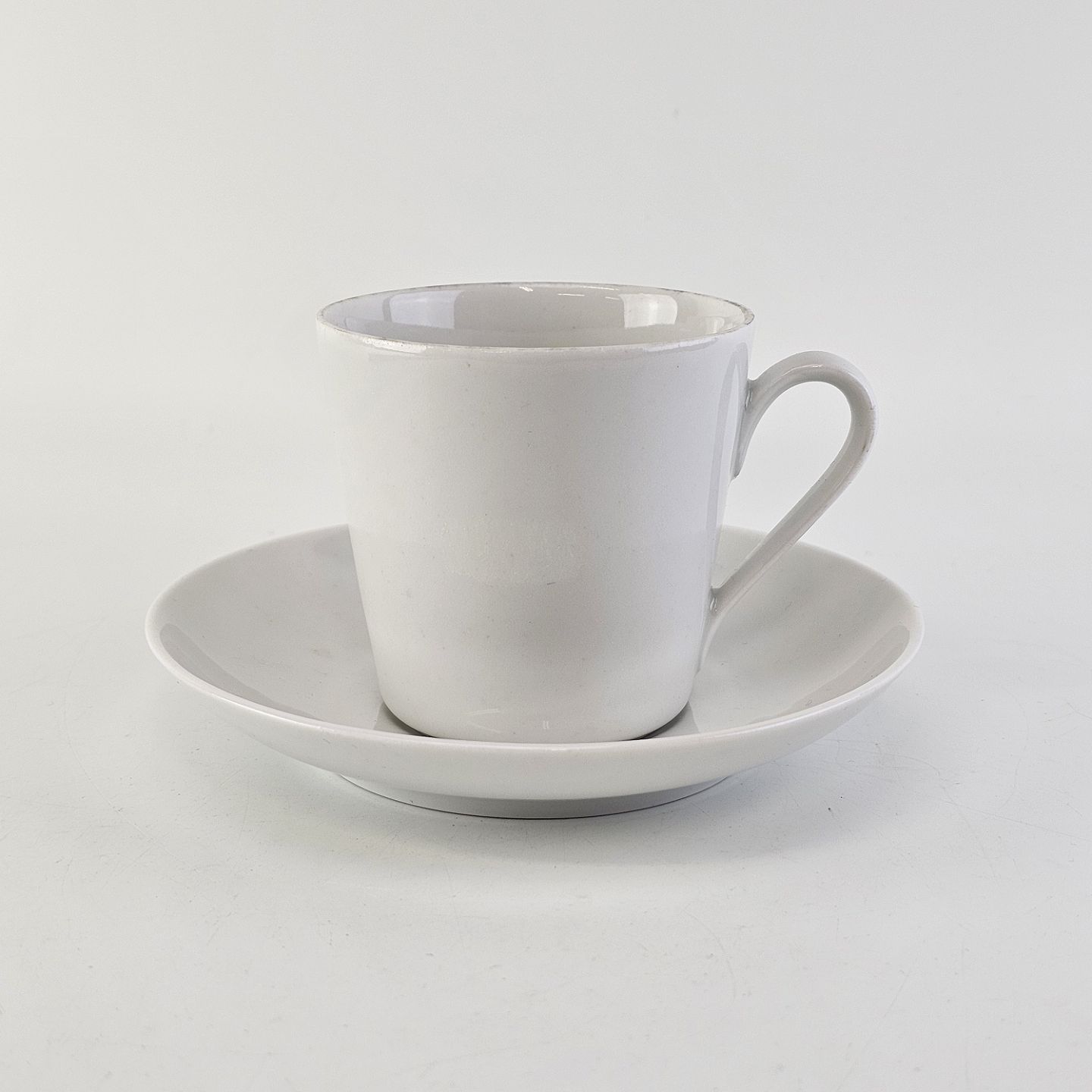 Kop med underkop i porcelæn fra stellet Hvid Glasurfarvet